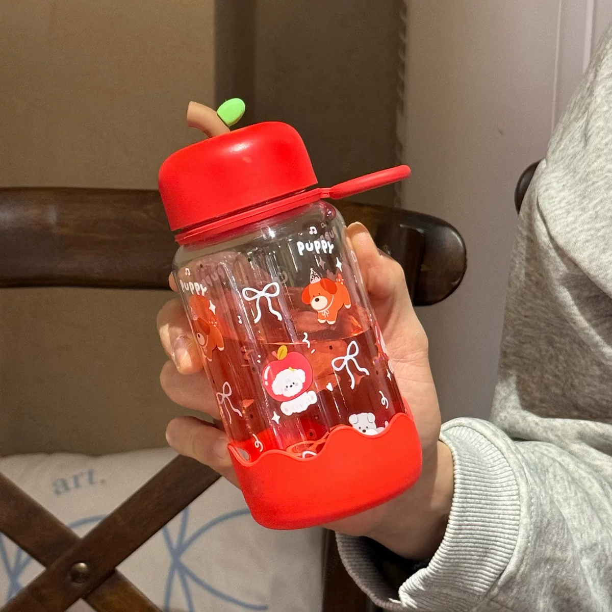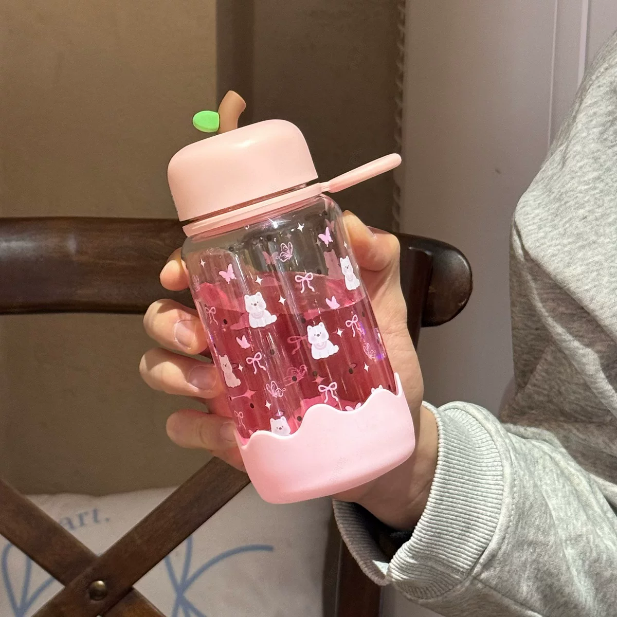 Handy ins High-Quality Cartoon Plastic Water Cup, Portable, Simple, Large Capacity, High Temperature Resistant Sports Cup for Students, for Women