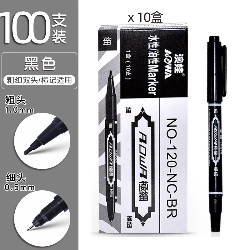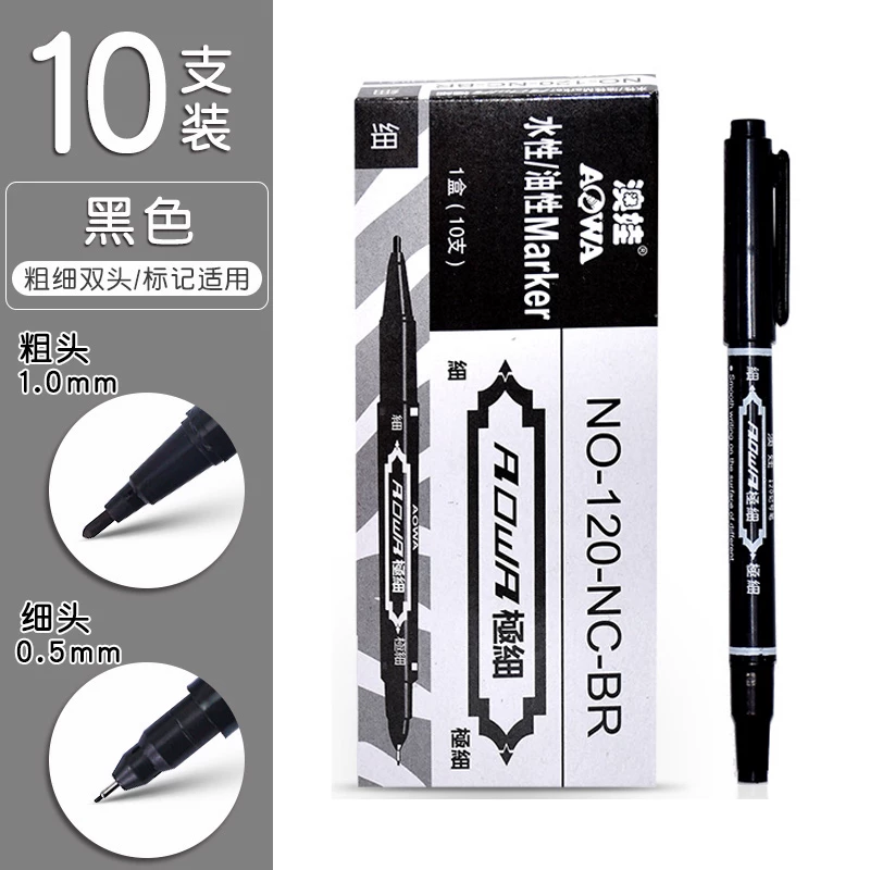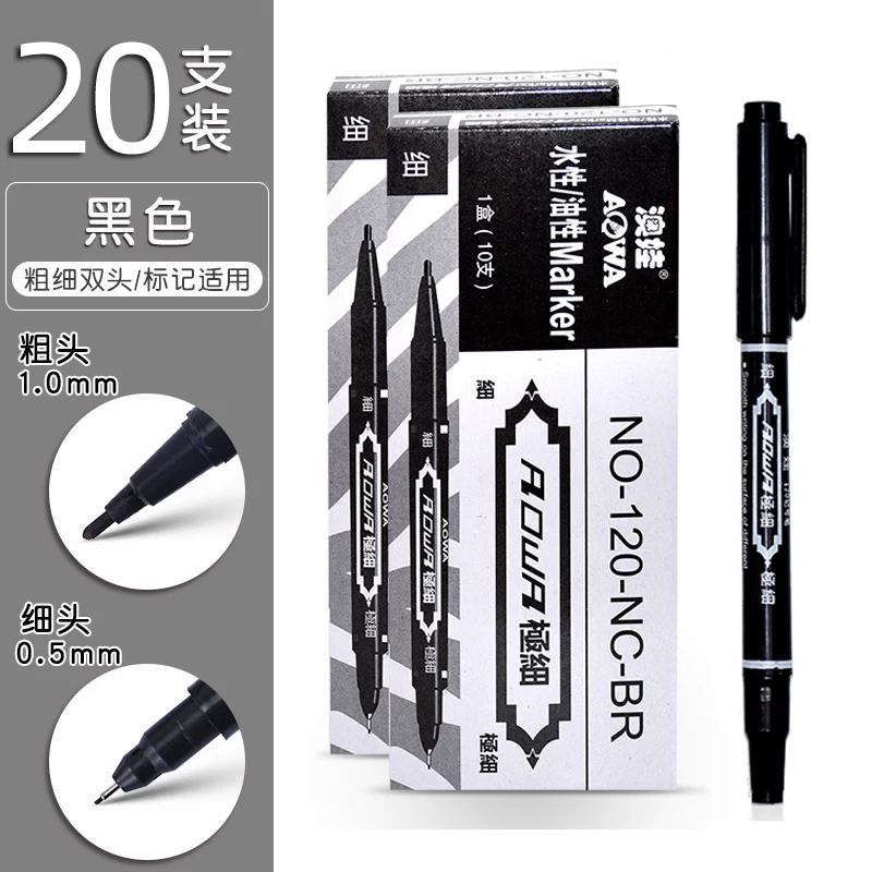 Small Double-Headed Marker Pen, Fine Tip Black Marker Pen for Art Students, Children's Drawing, and Student Outlining