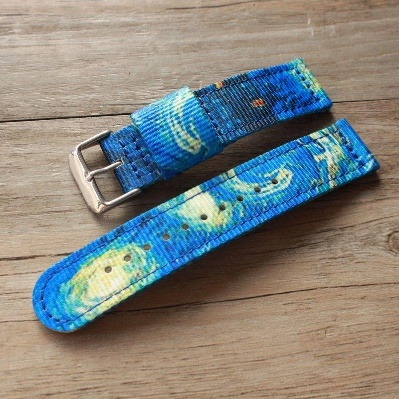 Original Van Gogh Retro British Style Suitable for Dw Nylon Watch Strap 18/20mm Men'S/Women's Canvas Night Sky Nylon Strap