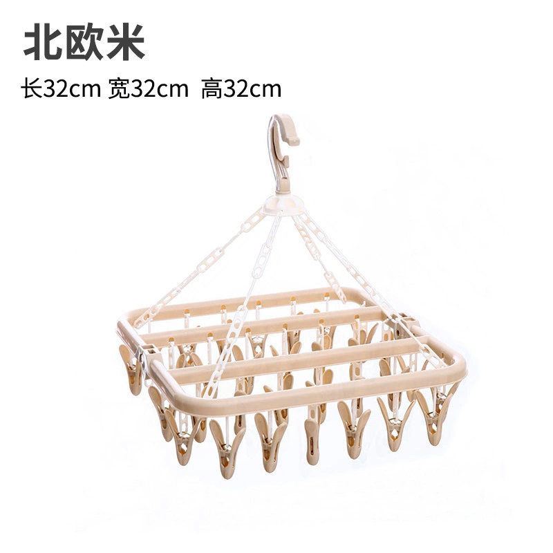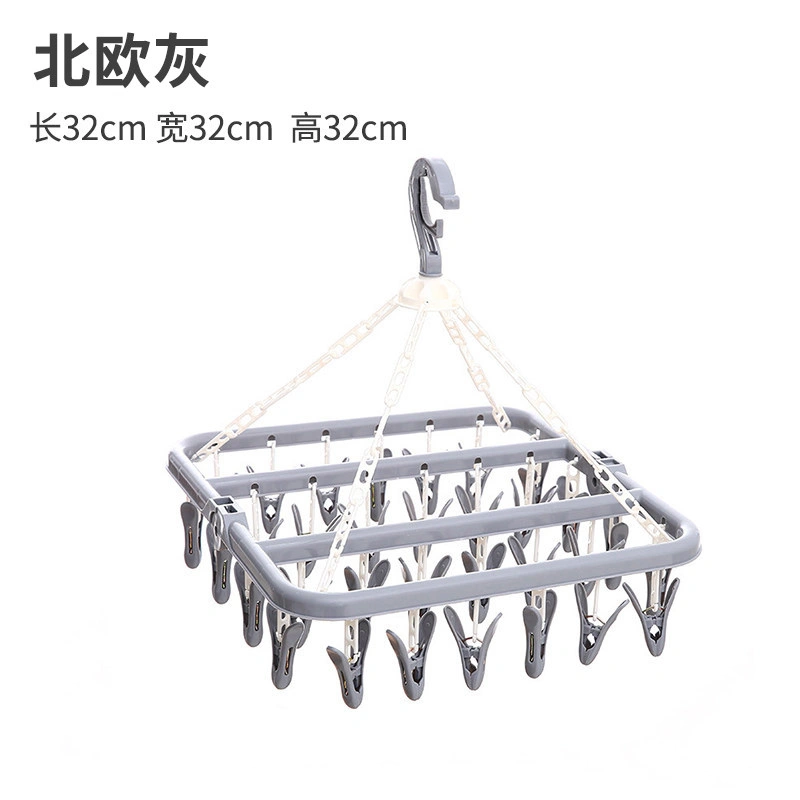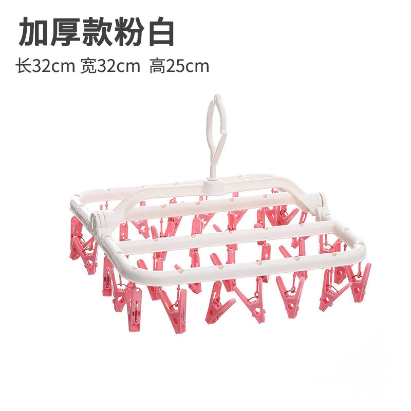 32-Clip Sock Drying Rack for Home Use, Multi-Clip Baby Underwear Drying Rack, Plastic Clothes Hanger with Clips
