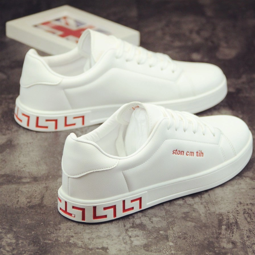 Artistic White Sneakers for Men, Summer Breathable New Korean Style Versatile White Shoes with Hidden Height Increase, Couple Sneakers, White Shoes