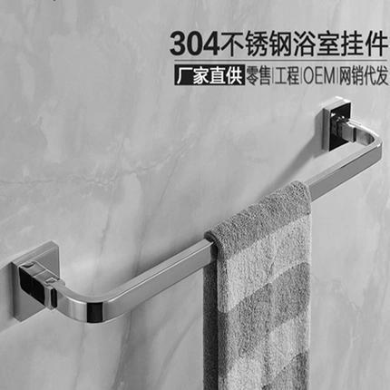 304 Stainless Steel Towel Rack Single Pole Bath Towel Storage Rack Paper Towel Pendant Bathroom Storage Rack Hardware Punching