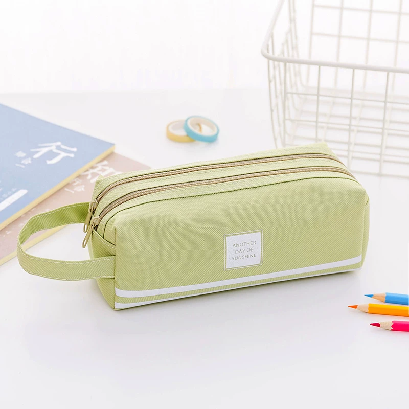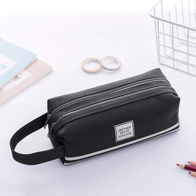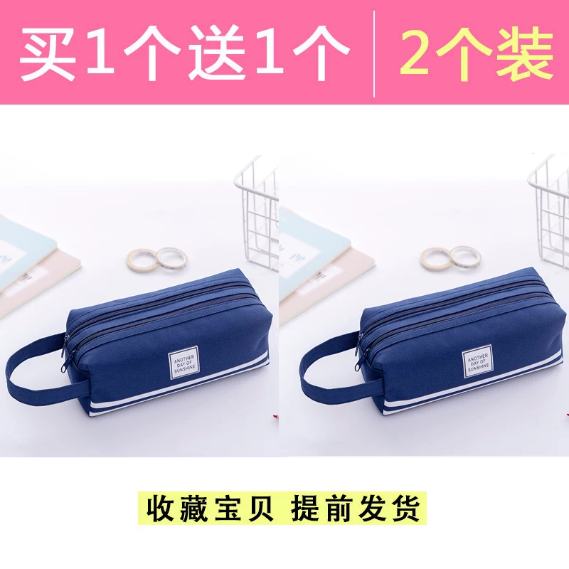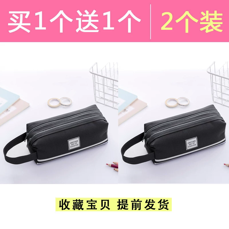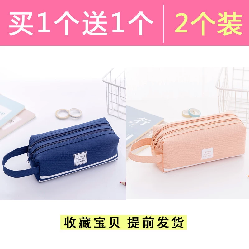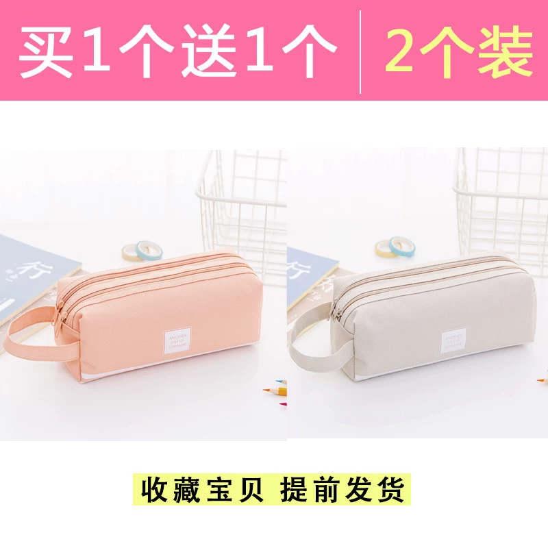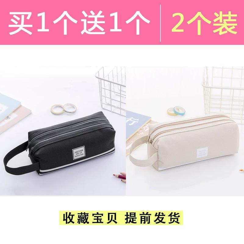 Ins Student Pencil Bag Stationery Girl Style Boys Junior High School and High School Students Canvas Pencil Bag Simple Creative Double-Layer Zipper Bag