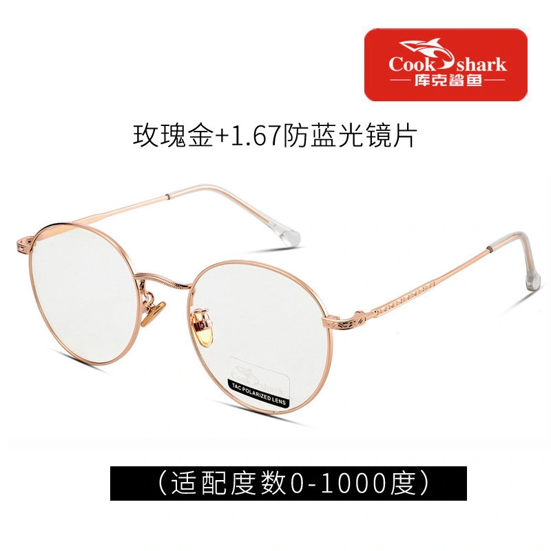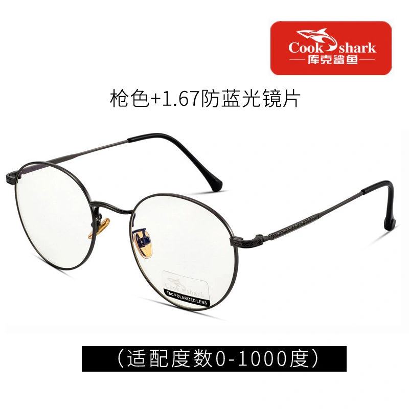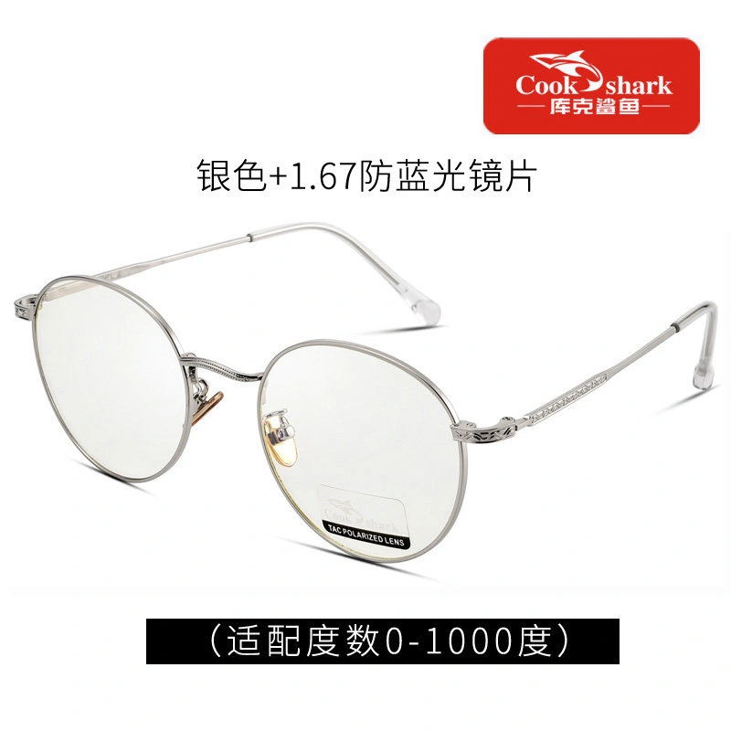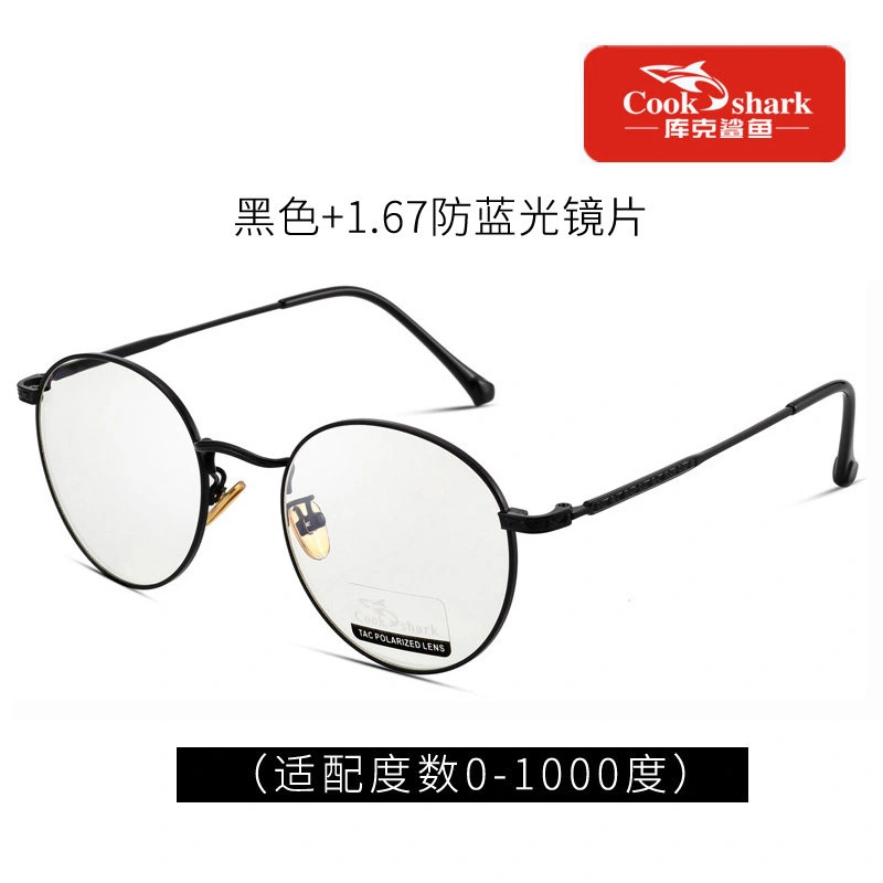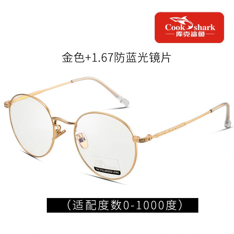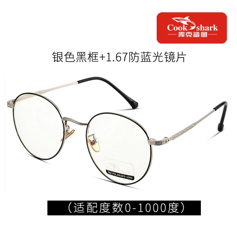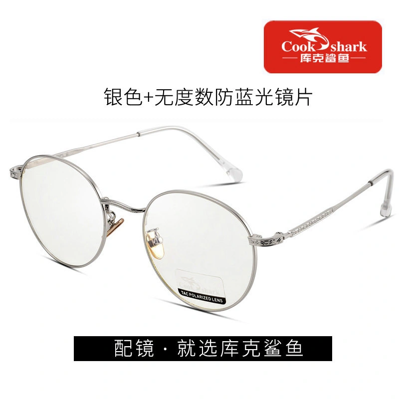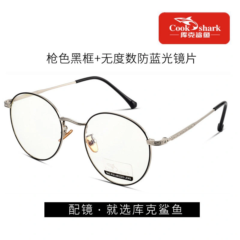 Cook Shark Anti-Blue Light Radiation Computer Glasses Round Frame Eyeglasses Plain Lens Protective Glasses for Women and Men Trendy