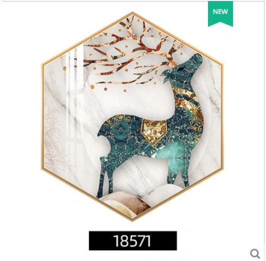 Scandinavian Accessible Luxury Elegant Living Room Decorative Painting Bring In Wealth and Treasure Deer Creative Hexagonal Sofa Background Wall Restaurant Painting
