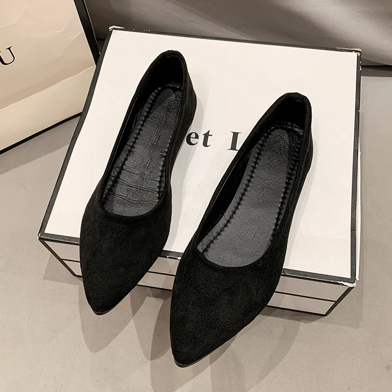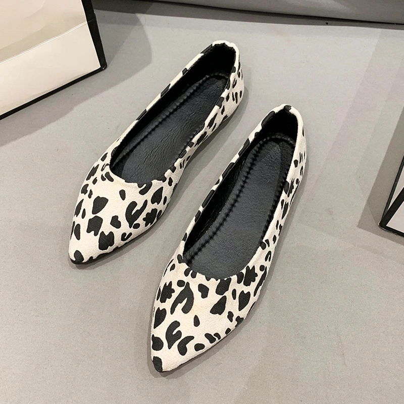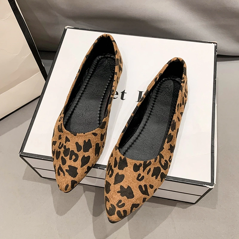 Pointed Toe Flat Shoes for Women, Spring Style, Versatile Suede Shallow Mouth Work Shoes, Slip-On Leopard Print Loafers