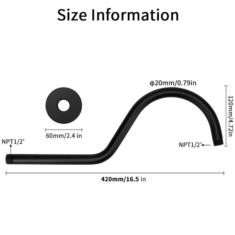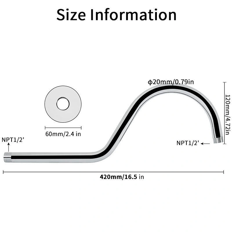 Yjb All-Copper Wall-Mounted Showerhead with Elevated Horizontal Pipe, Side-Mounted Shower Nozzle, Water Inlet, Overhead Spray, Concealed Shower Rod, Rotatable
