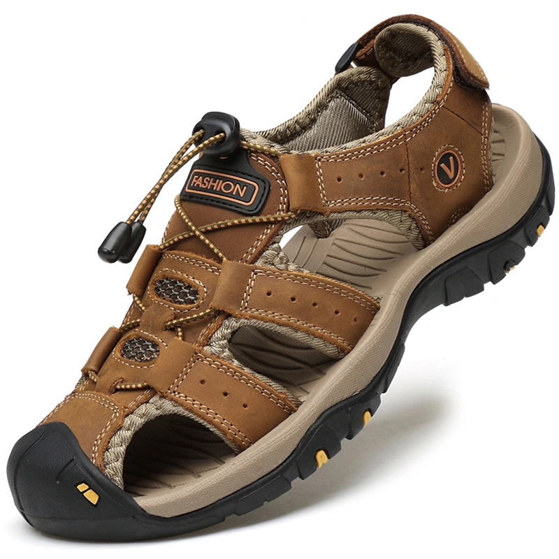 Summer Genuine Leather Sandals for Men, Breathable Outdoor Sports and Leisure Men's Toe-Toe Sandals, Thick-Soled Non-Slip Beach Shoes for Men, Trendy