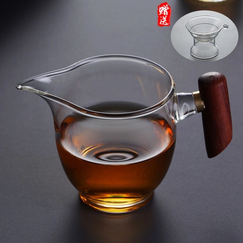 Side Handle Glass Fair Cup Thickeneded High Temperature Resistant Wooden Handle Tea Divider Tea Leak Set High-End Tea Set Japanese Tea Sea