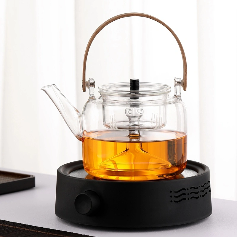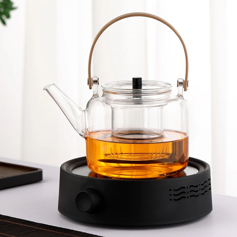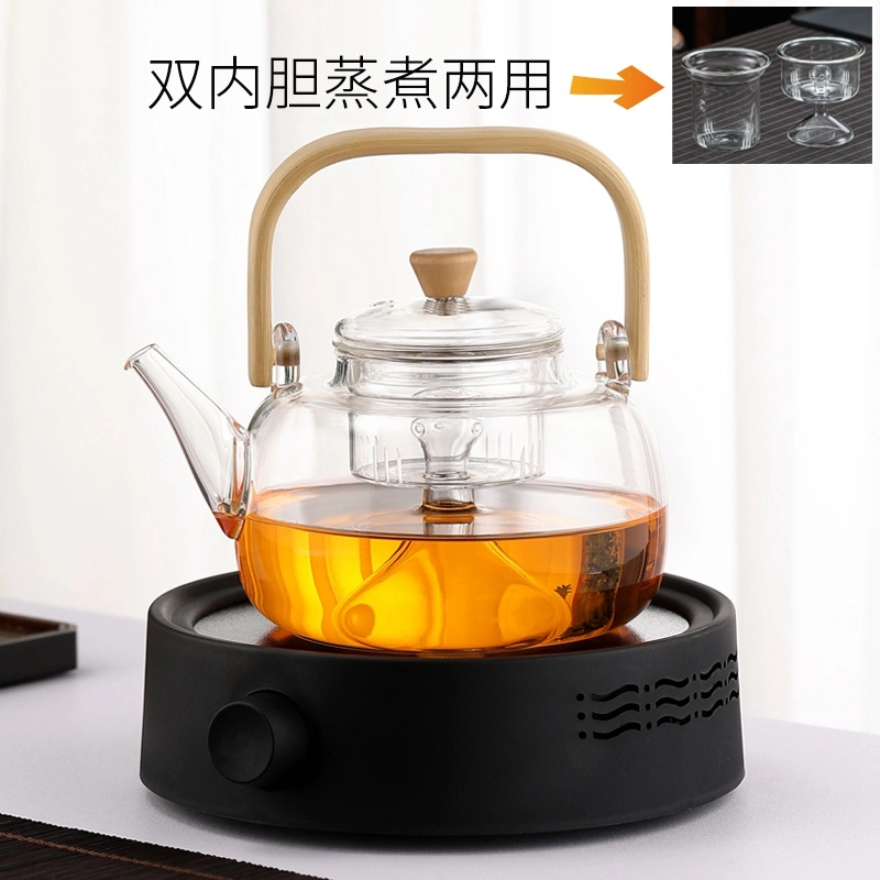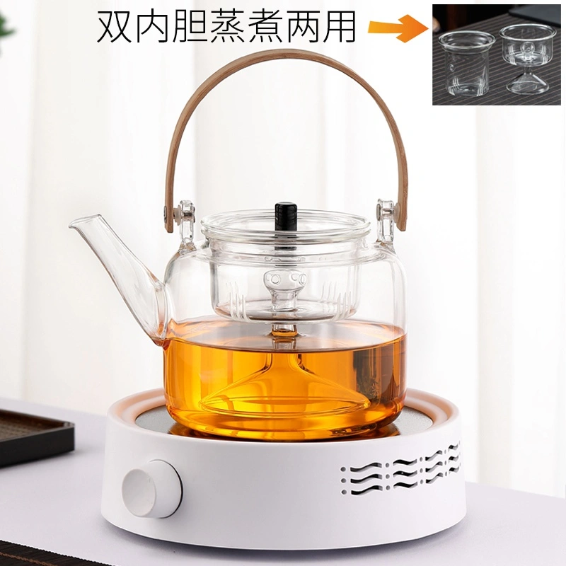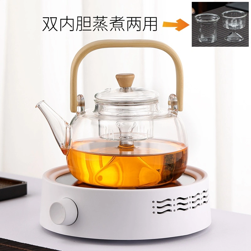 High-Temperature Resistant Glass Teapot with Handle, Health-Preserving Tea Brewing Pot, Steaming Tea Set, Electric Ceramic Stove Set, Small Household Tea Stove