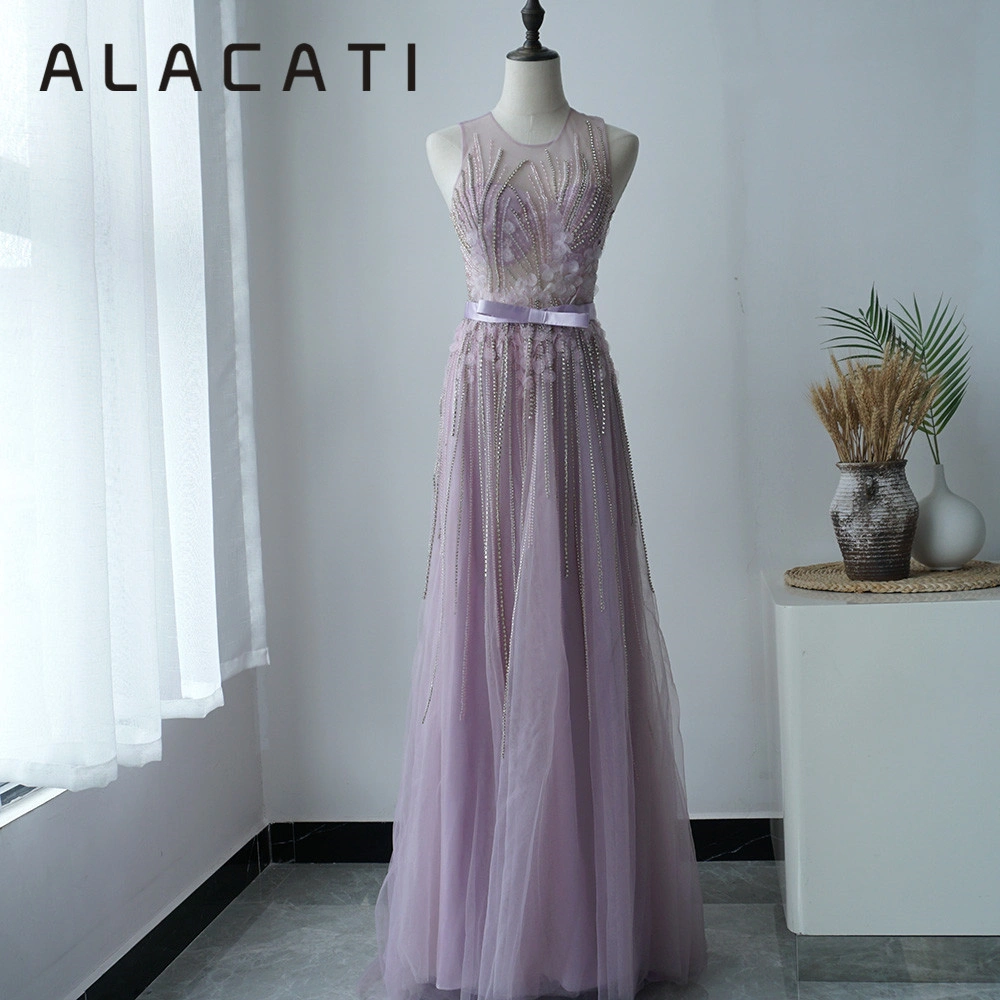 Special! Alacati's New Classy Crystal Fantasy Purple Long Evening Dress for Women to Look Slim and Host the Bride