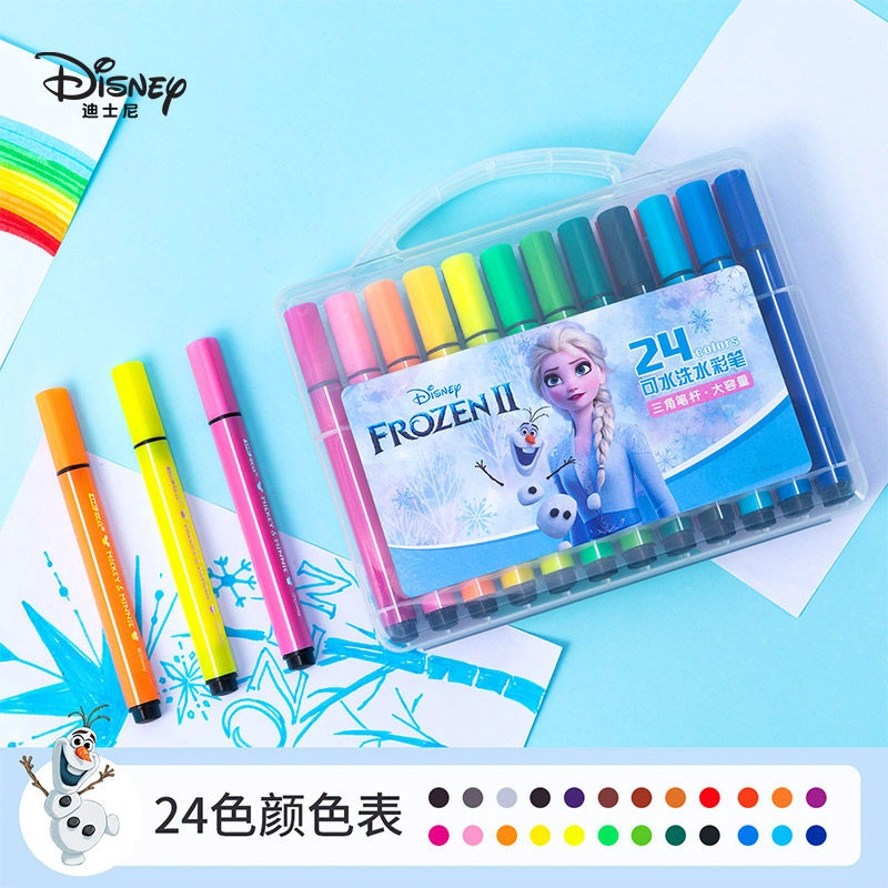 Disney Watercolor Pen Set 36 Colors for Kindergarten Children and Elementary School Students, Painting Pens 12 Colors for Toddlers, Graffiti for Beginners, Safe and Washable, Hand-Painted 24 Colors Frozen Elsa Art Supplies