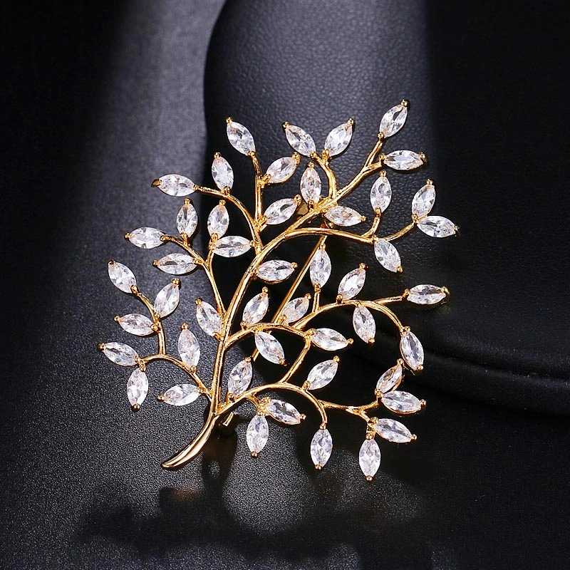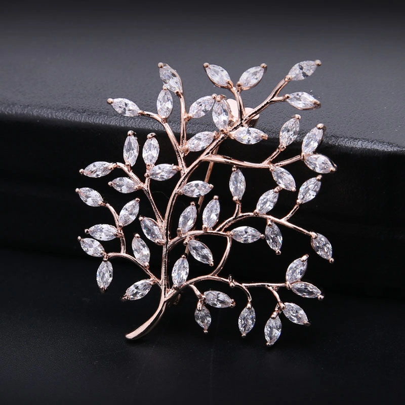 Women's Brooch Fashion 3A Zircon Exquisite Leaf Corsage Pin Silk Scarf Buckle Accessories Women's Suit Brooch Jewelry