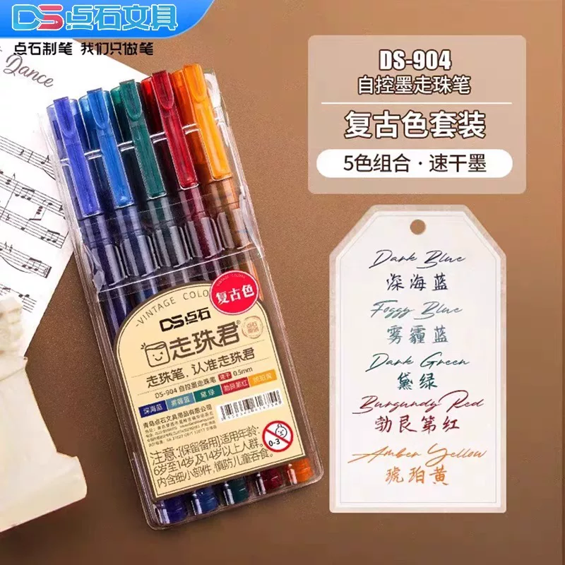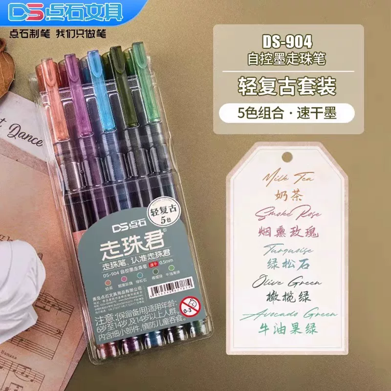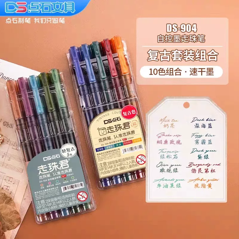 Dianshi Ds904 Direct Liquid Rollerball Pen in Vintage Colors, Quick-Drying Ink, Needle-Type Pen for Students, Suitable for Exams and Journaling