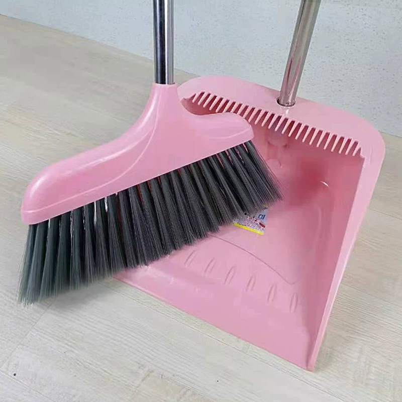 Broom and Dustpan Set for Home Use, Soft Bristle Broom and Dustpan Combination, Single Plastic Sweeping Broom, Enlarged Windproof Dustpan