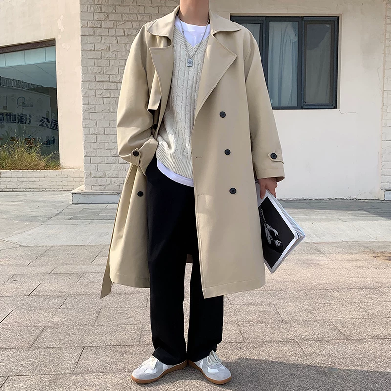 Dark Style Trench Coat for Men, Mid-Length Jacket, Korean Version, Trendy Brand ins Loose Fit 2026 New Spring Coat