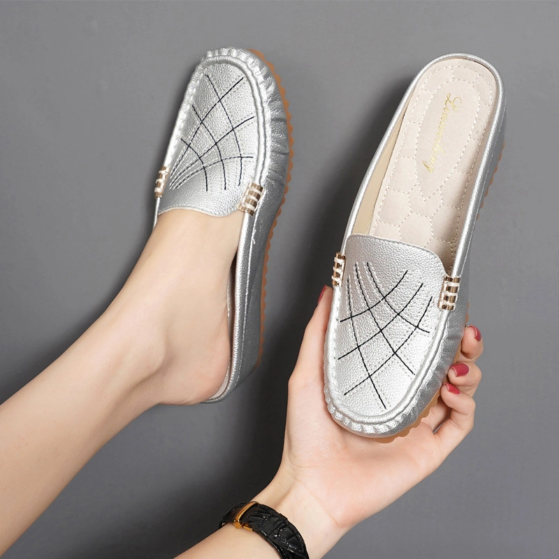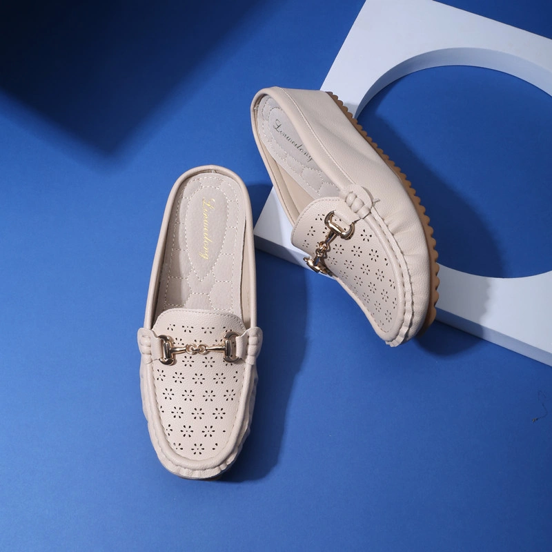 2025 New Style Height-Increasing Slippers for Women, Summer Comfortable and Fashionable Wedge-Heeled Thick-Soled Outdoor Flat Closed-Toe Half Slippers for Women