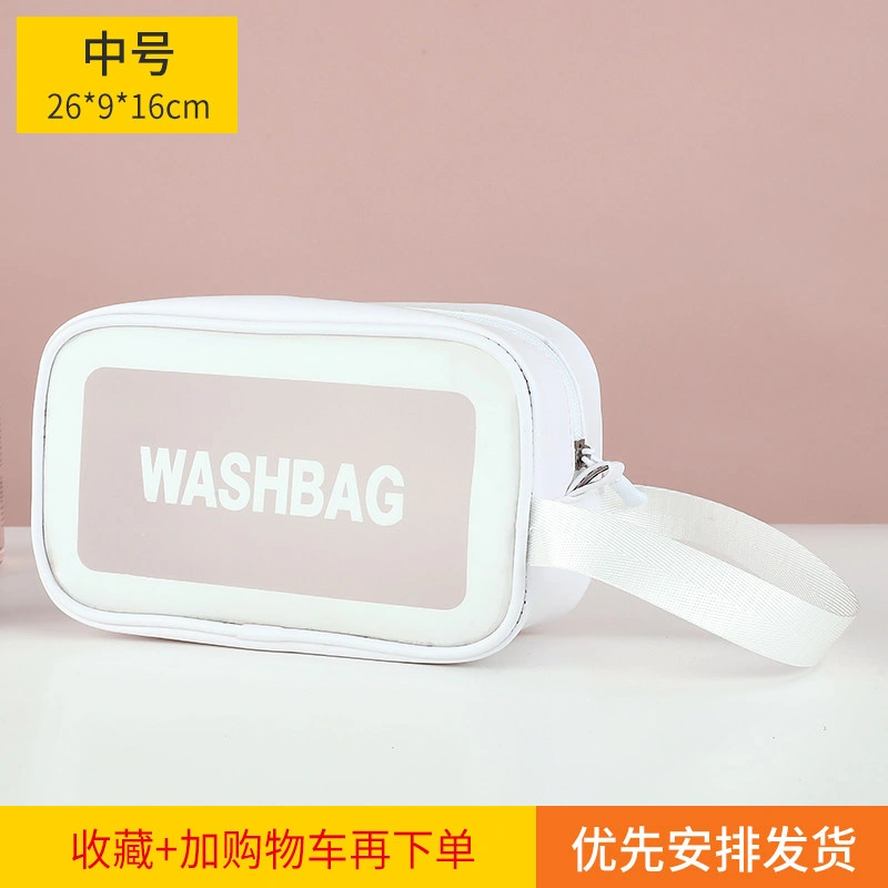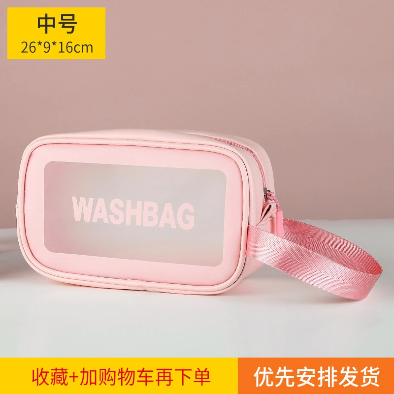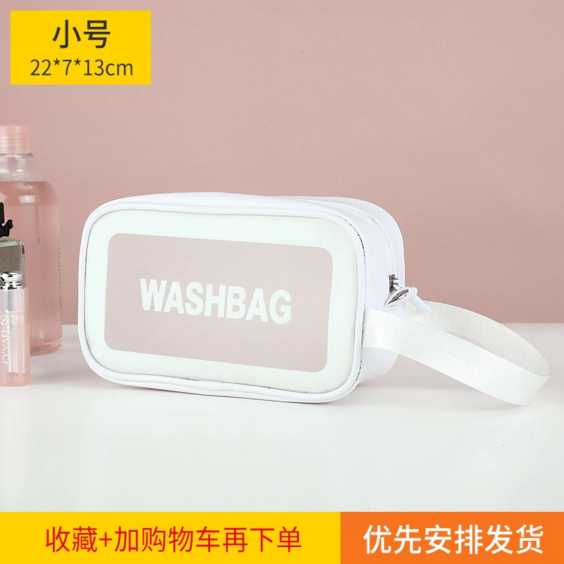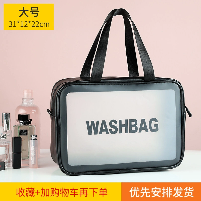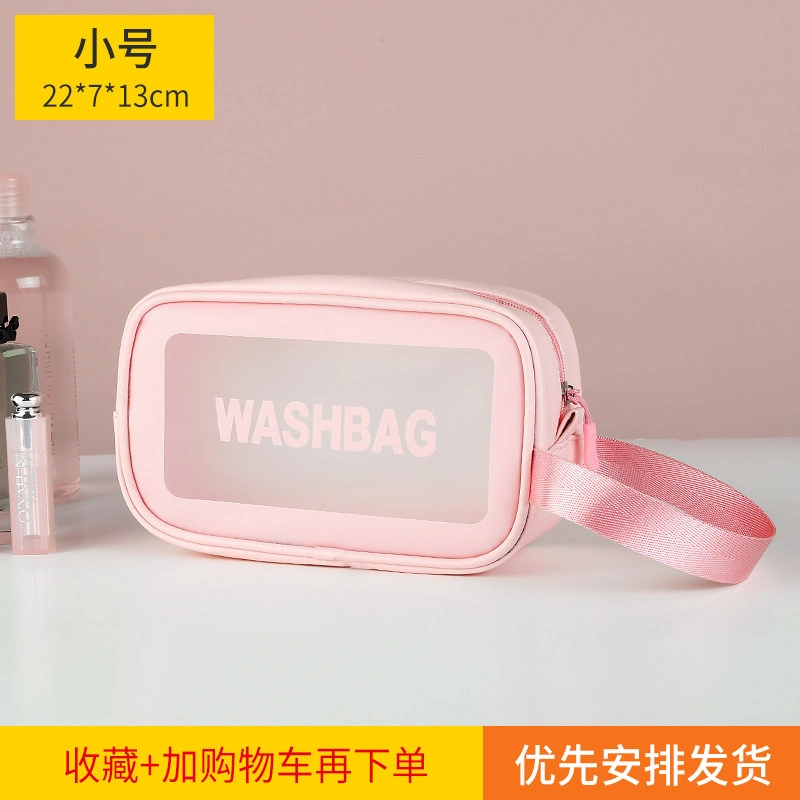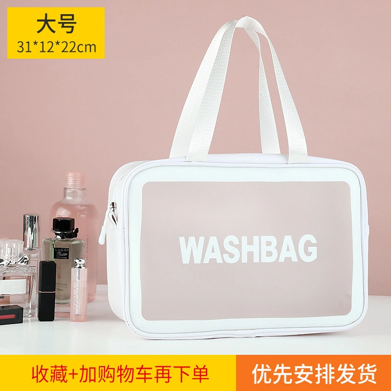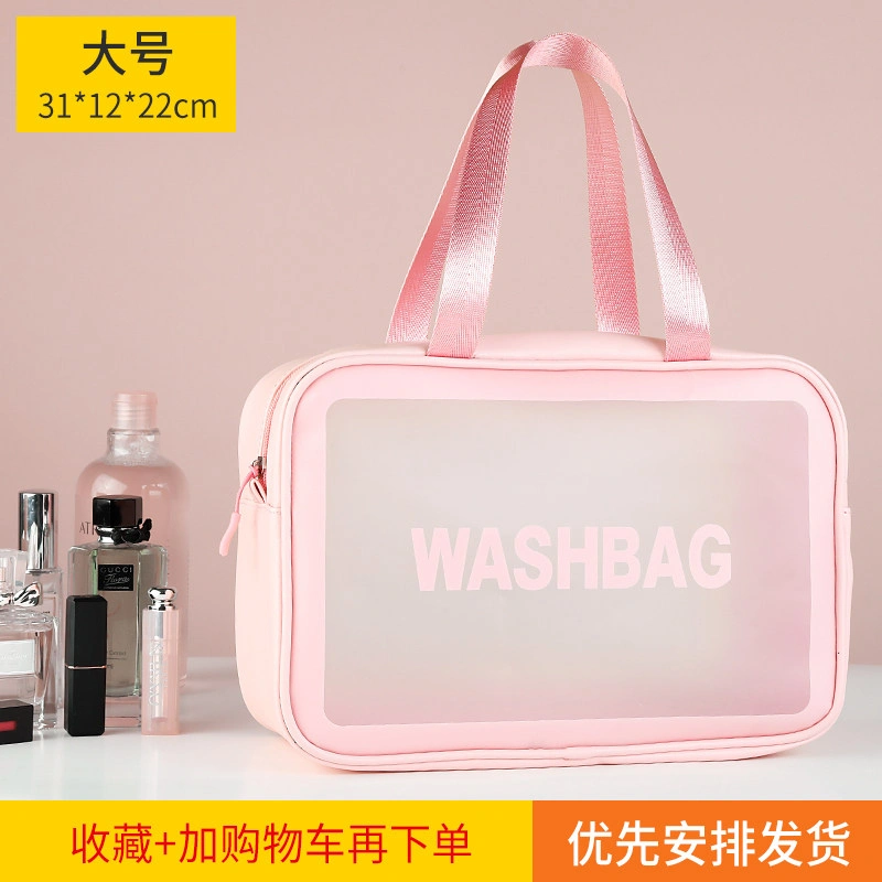 Fashionable Girly Transparent Cosmetic Bag with Large Capacity, Portable Hand-Held Skin Care Product Storage Bag, Travel Waterproof Toiletry Bag