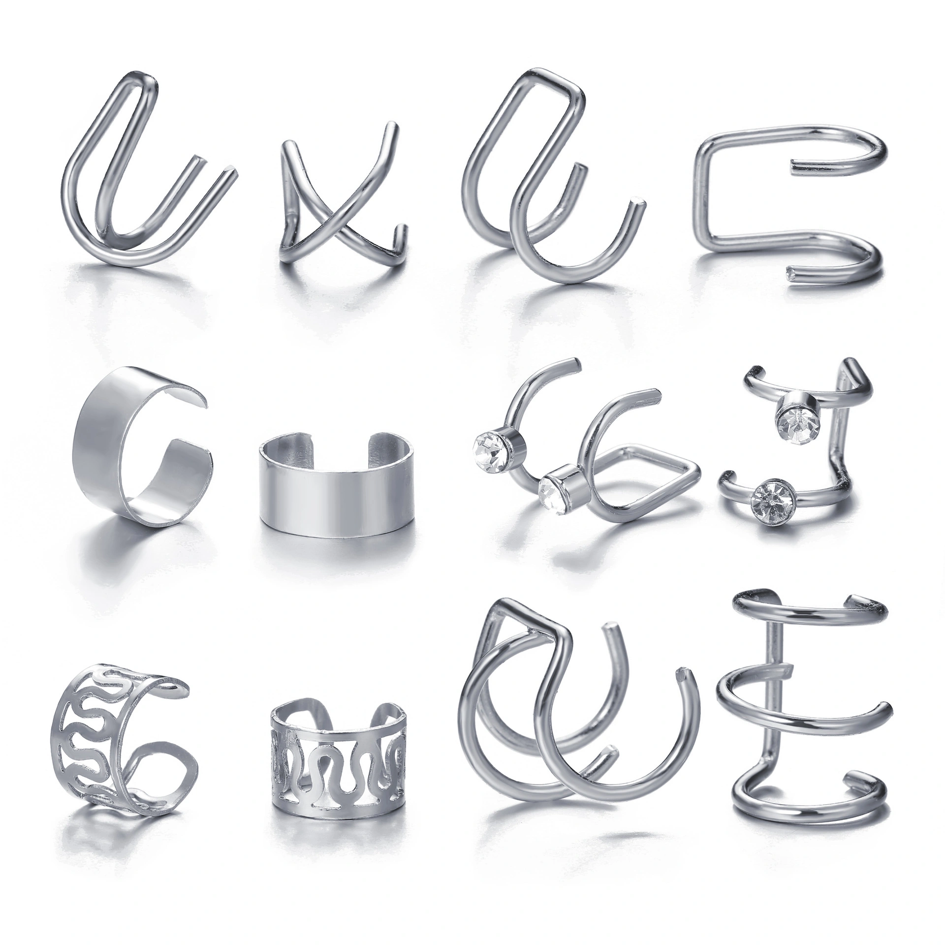 12Pcs Set Earrings Women Ear Clip Set C-Shaped Letter Non-Pierced Ear Clips 12-Piece Set 52999