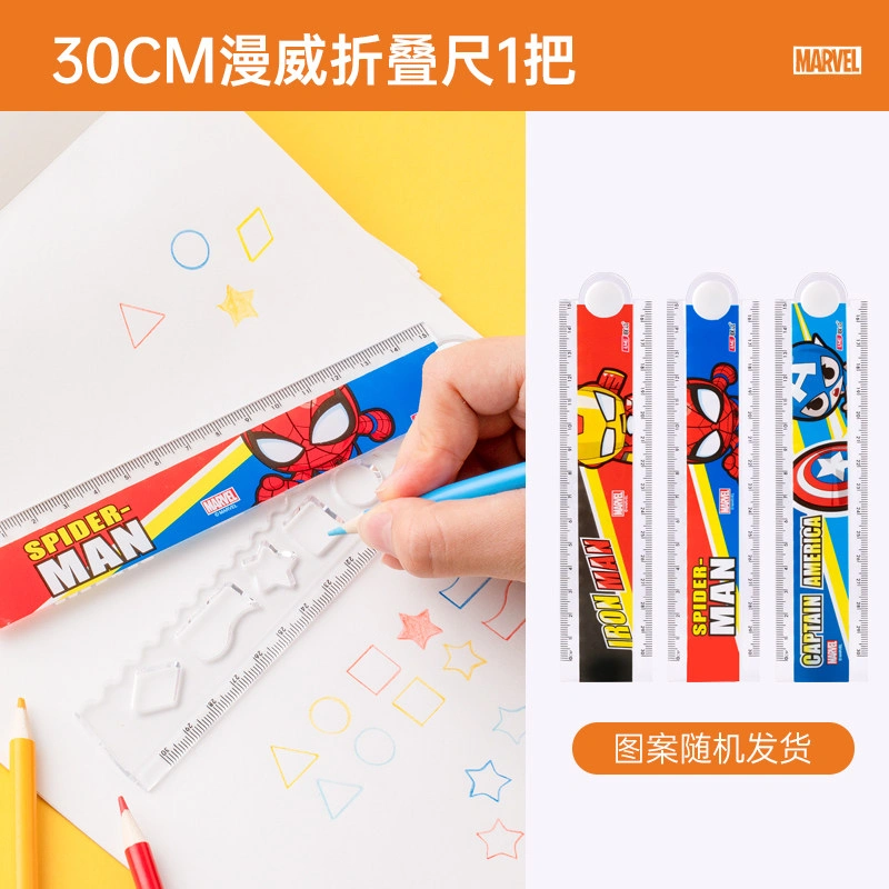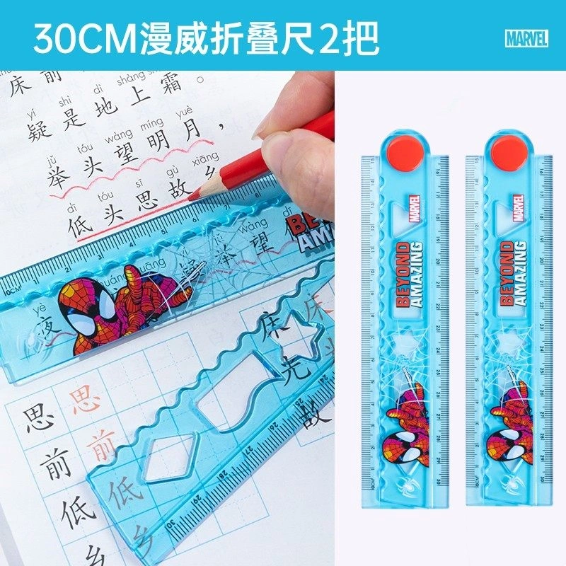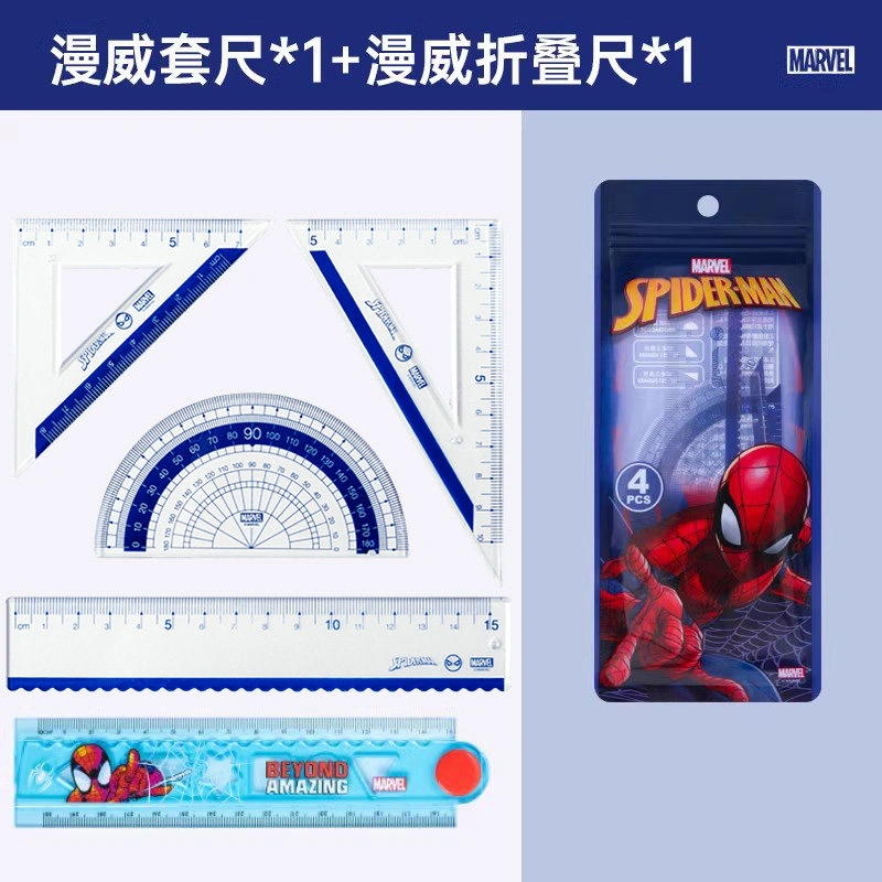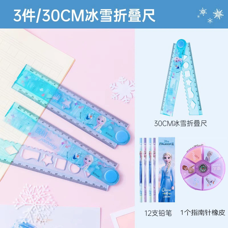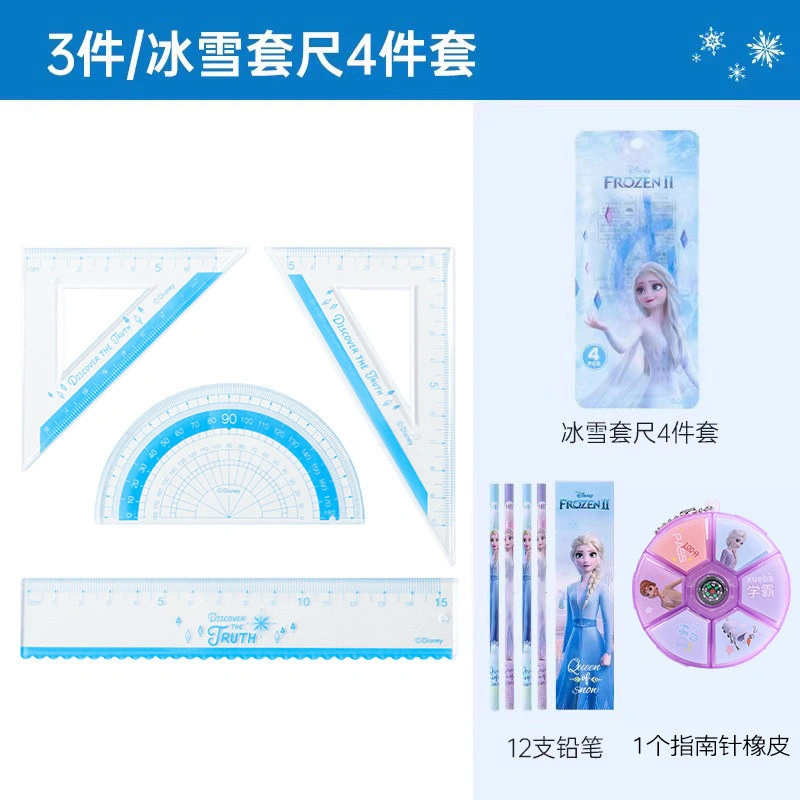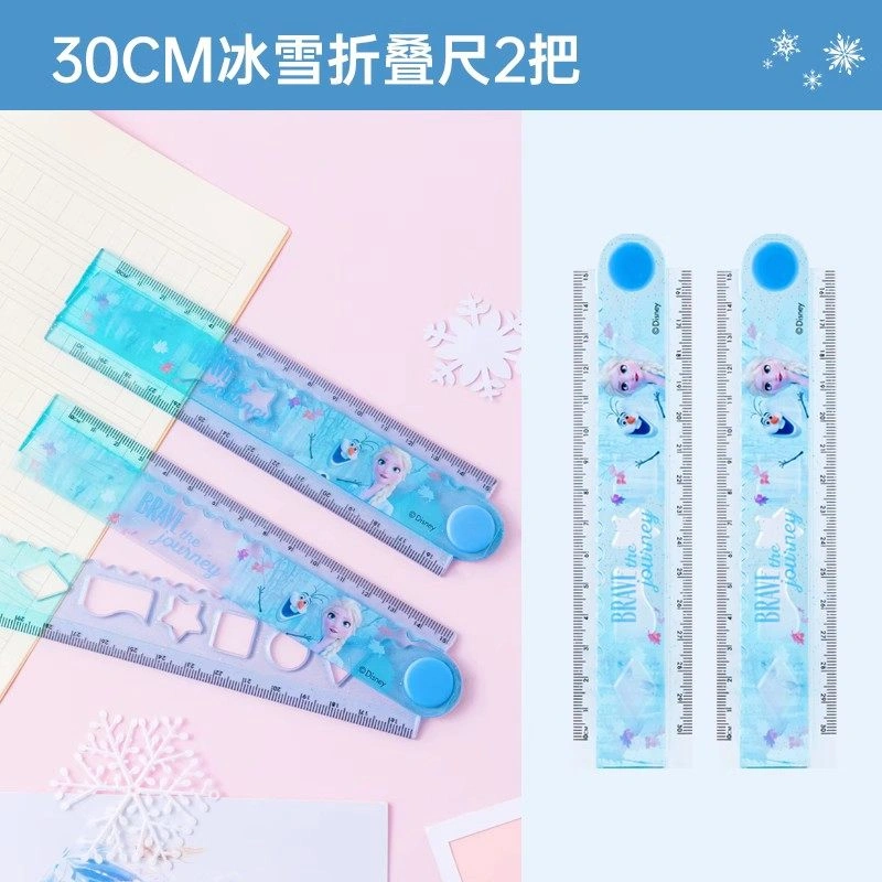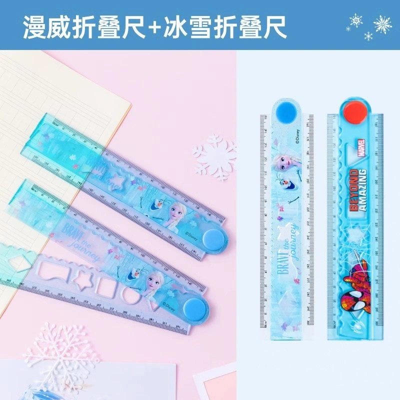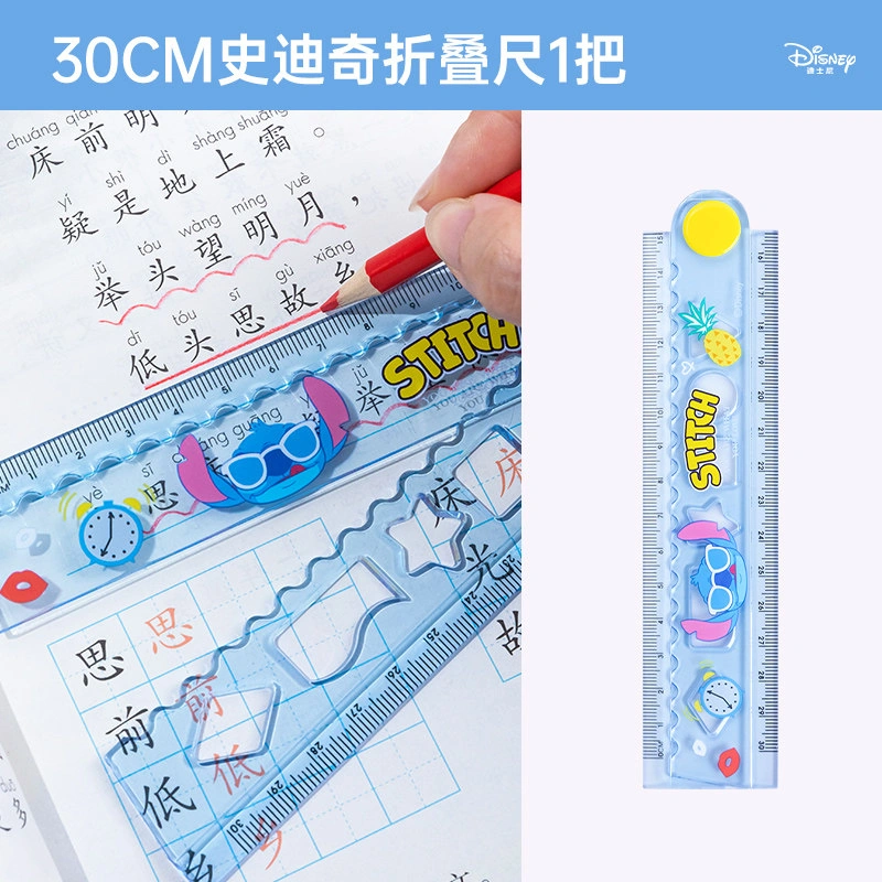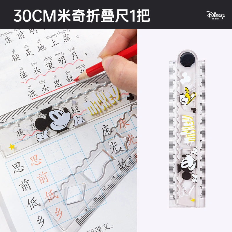 Disney Folding Ruler Set for Elementary School Students, High-Quality Triangular Ruler, Multifunctional Ruler, Student Stationery, Children's Protractor, First and Second Grade Line Drawing Wave Ruler Set, Four-Piece Set