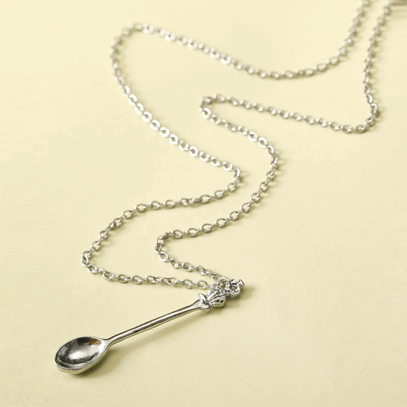 Vintage Spoon Necklace Men's Crown Mini Tea Spoon Pendant Unisex Spoon Pendant Necklace