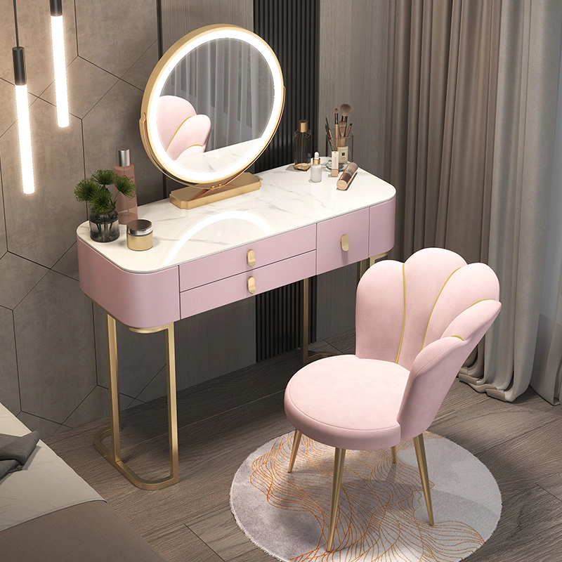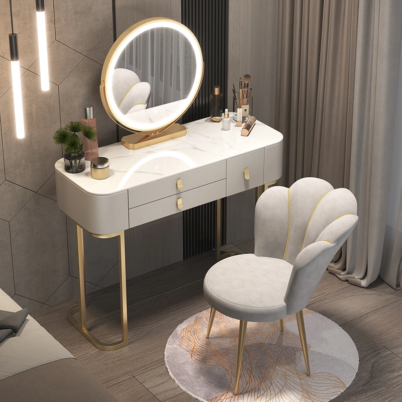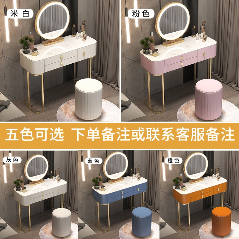 Solid Wood Light Luxury Rock Slab Dressing Table, High-End Makeup Table, Modern Minimalist Bedroom Storage Cabinet, Integrated Makeup Desk for Small Spaces