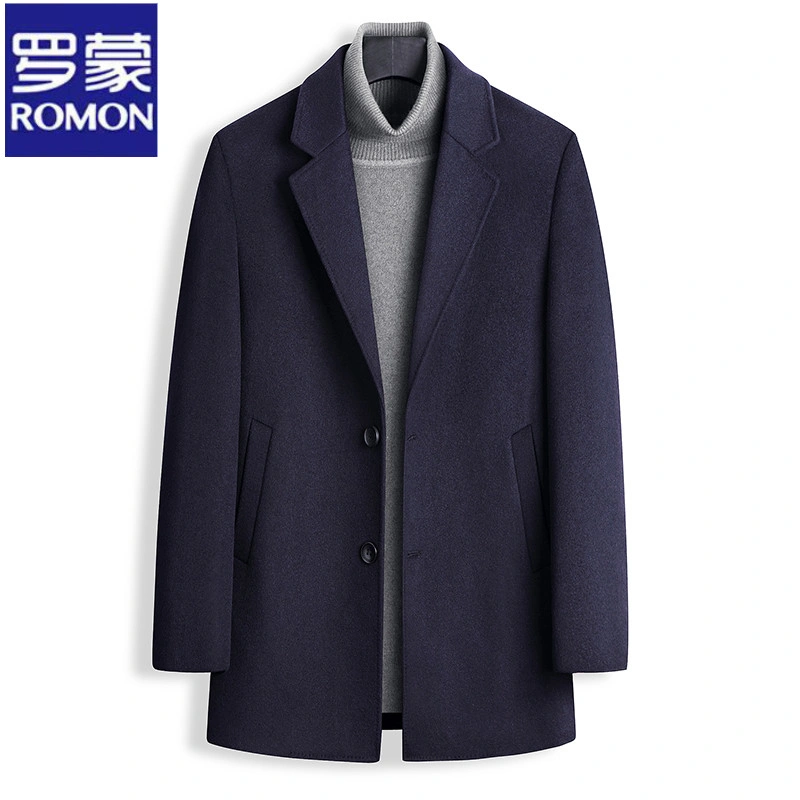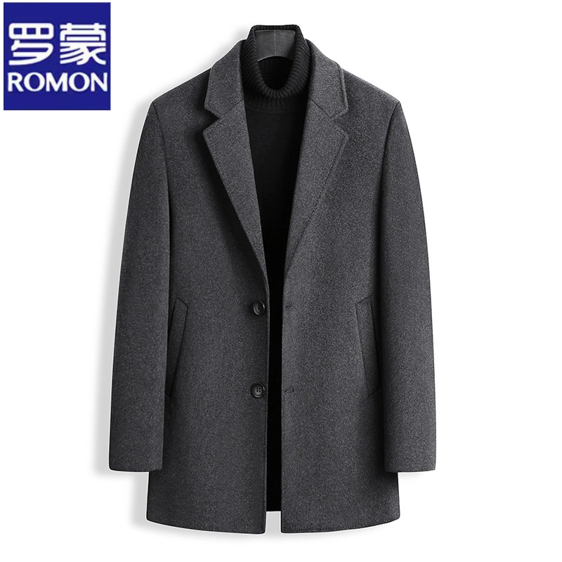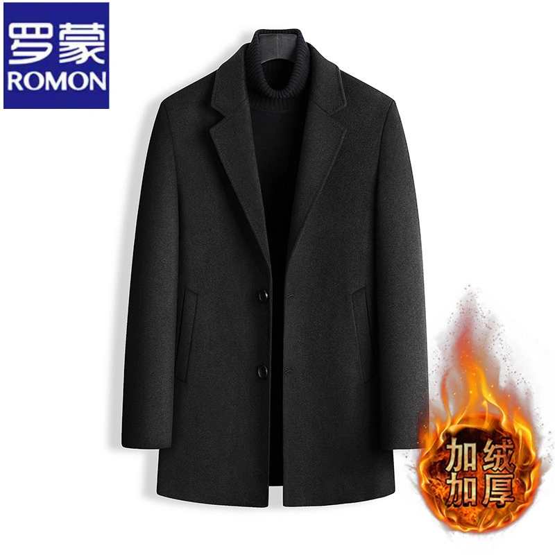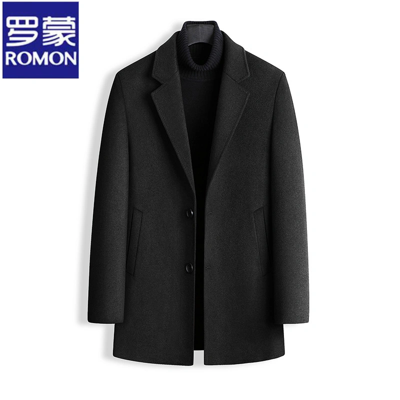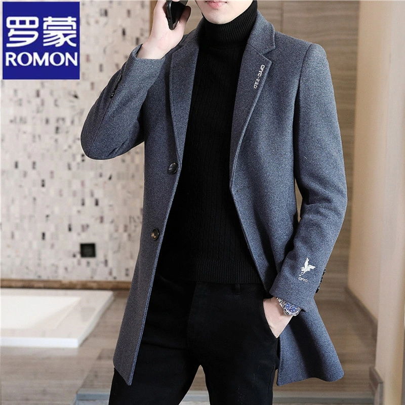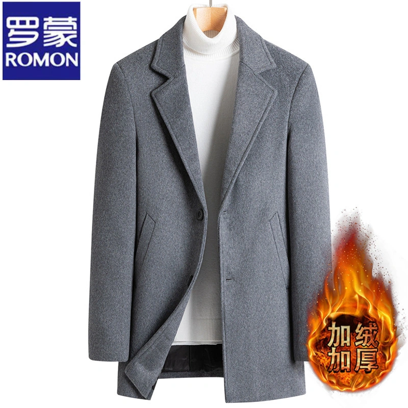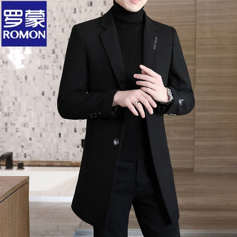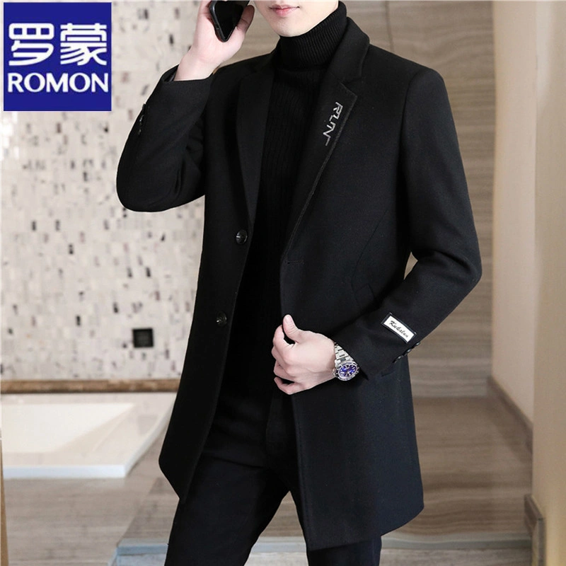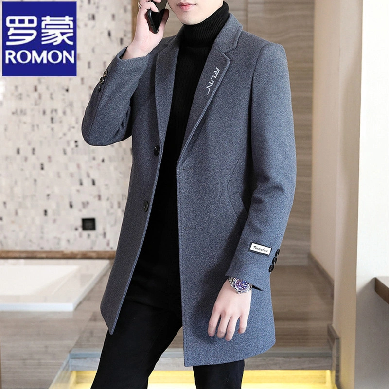 Romon Woolen Coat for Men, Thickened Cashmere Woolen Jacket, Slim Fit Business Mid-Length Casual Youth Trench Coat