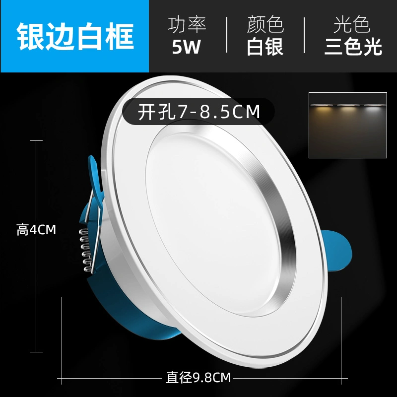 Led Downlight Embedded Spotlight Ceiling Light 5W Living Room Home Use Three-Color Dimming Bull's Eye Light Hole Light Ceiling Light