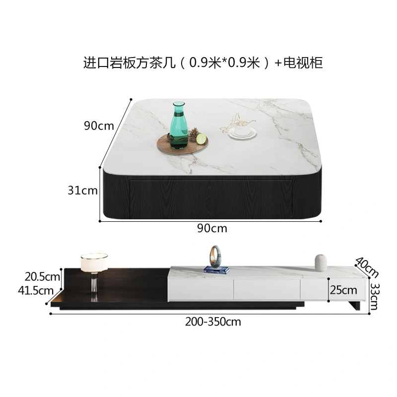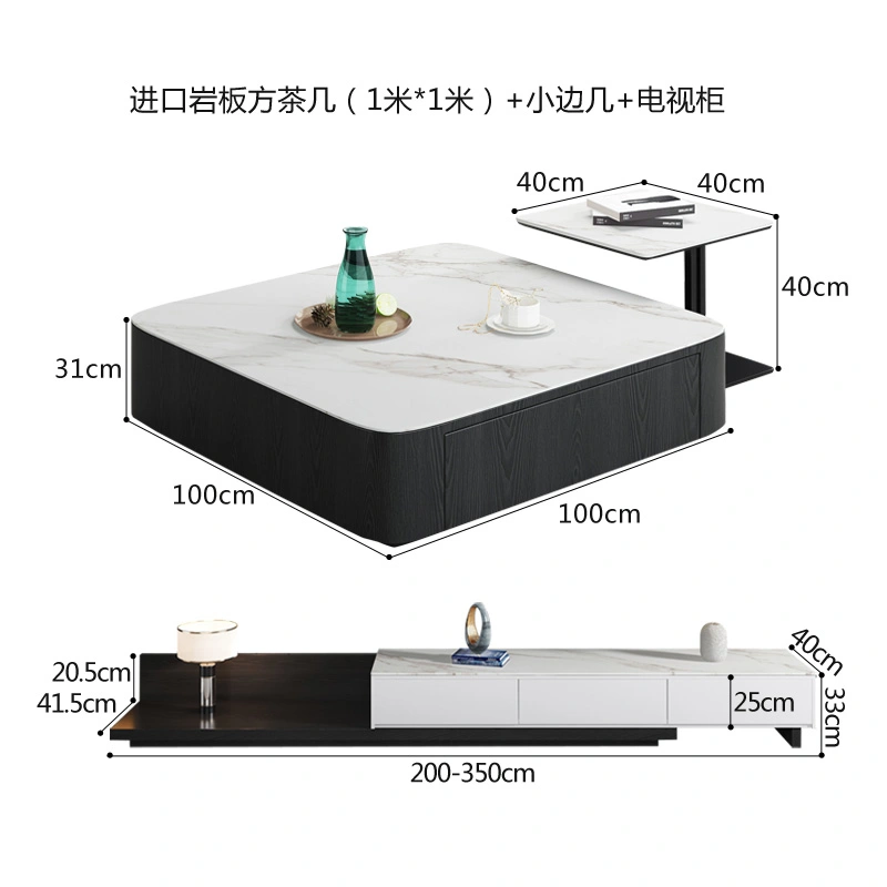 Italian-Style Slate Coffee Table and Tv Cabinet Combination, Light Luxury, Modern and Simple, Living Room, Small Apartment, Home Use, Nordic Solid Wood Coffee Table