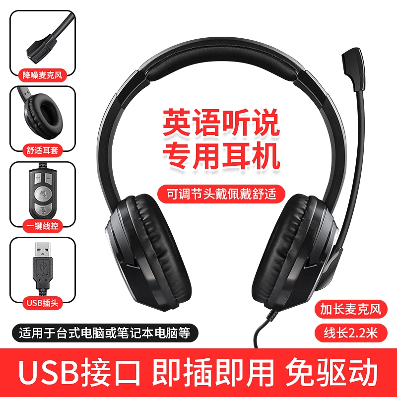Head-Mounted USB Headphones for High School and College Entrance Exams, Online Class Learning, Voice, English Listening, Listening and Speaking Test, Dedicated Recording Headset