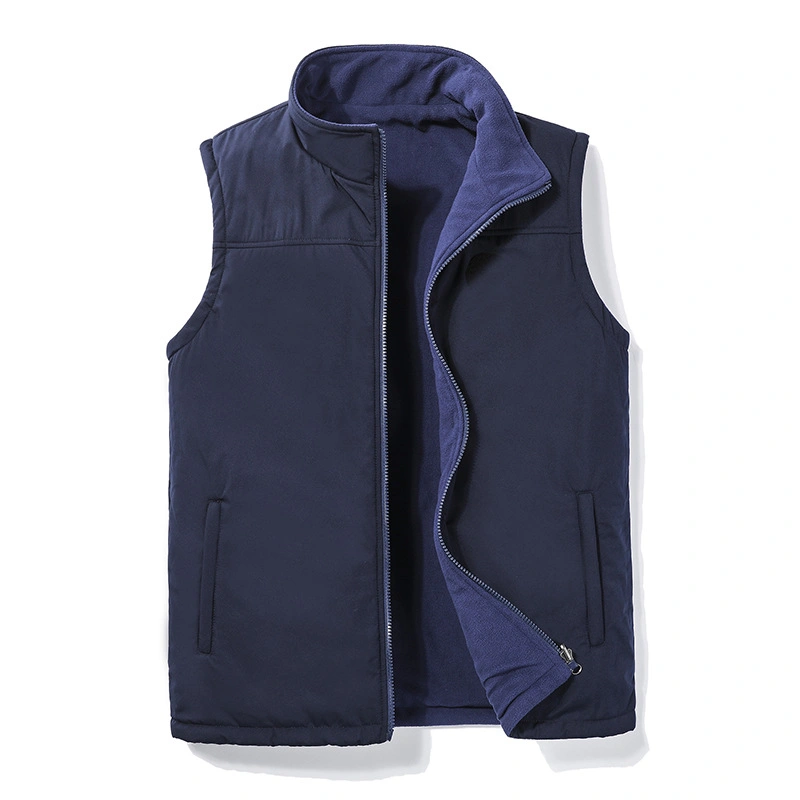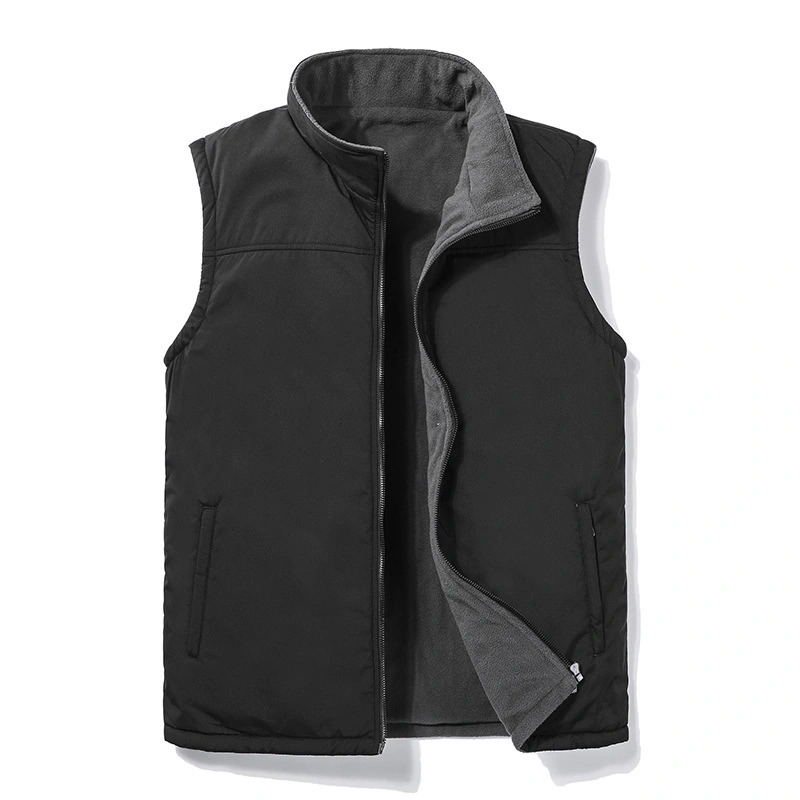 Reversible Vest for Men, Autumn and Winter, Thickened, Warm, Fleece Vest, Stand Collar, Loose Fit, Large Size, Sleeveless Jacket
