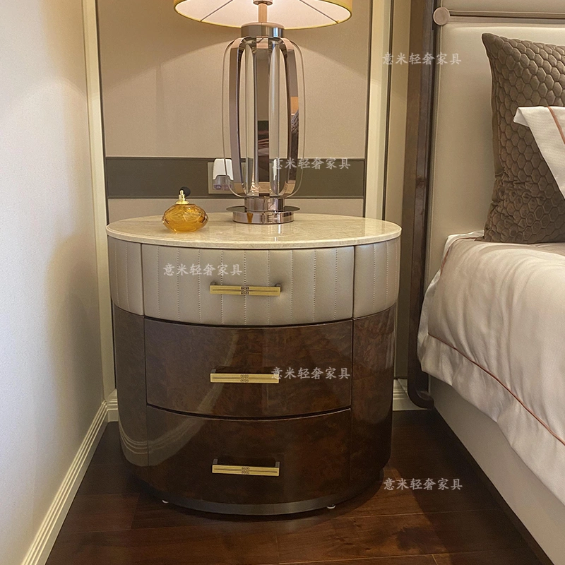 Casual Post-Modern Bedside Table American Accessible Luxury Marble Bedside Storage Cabinet Building Model House Villa Xiaohongshu