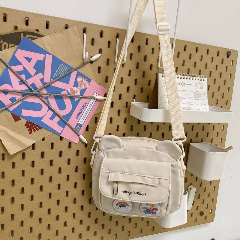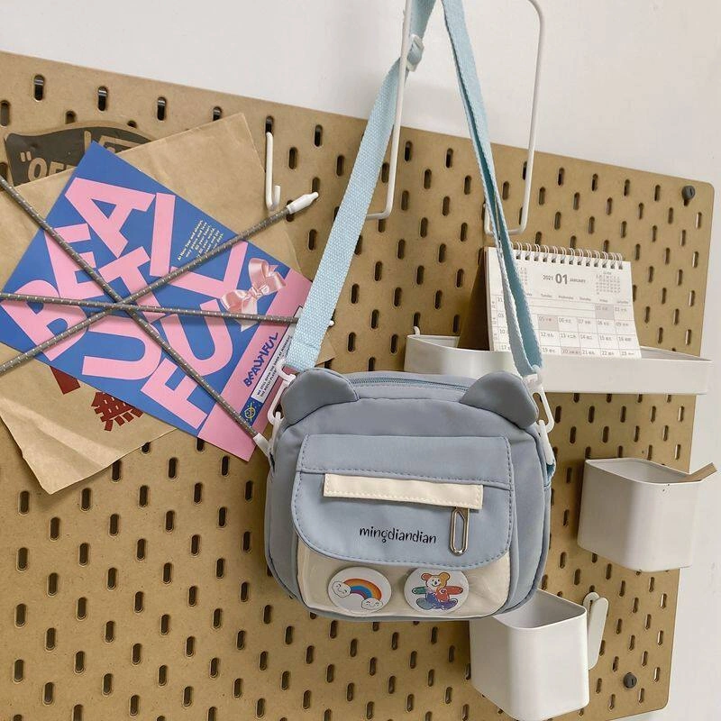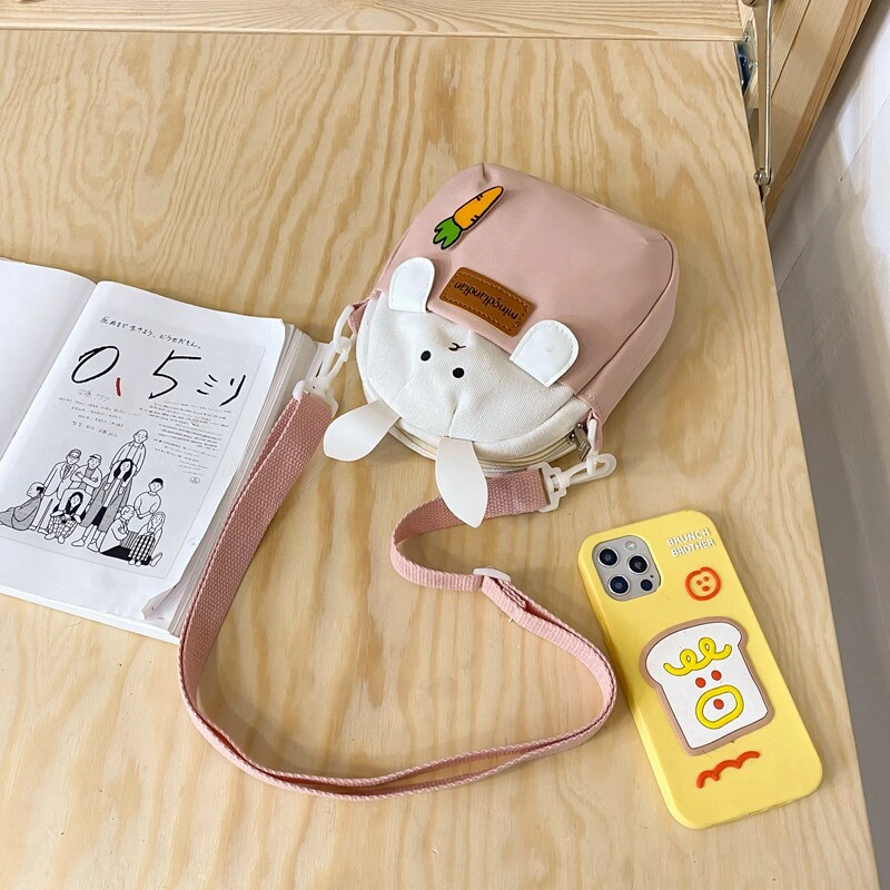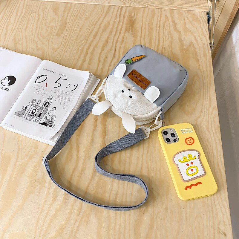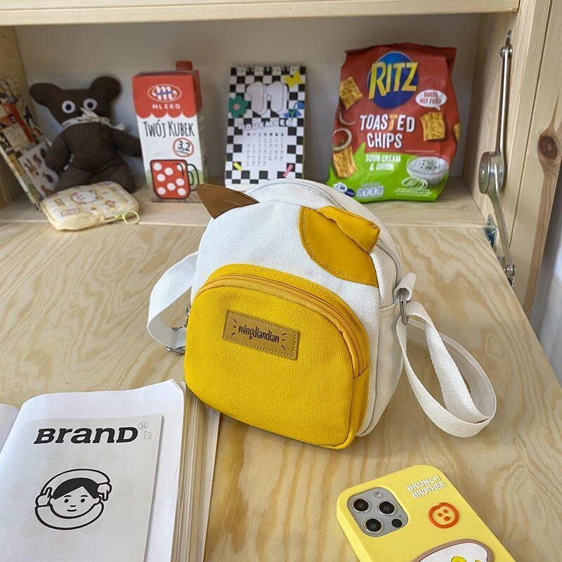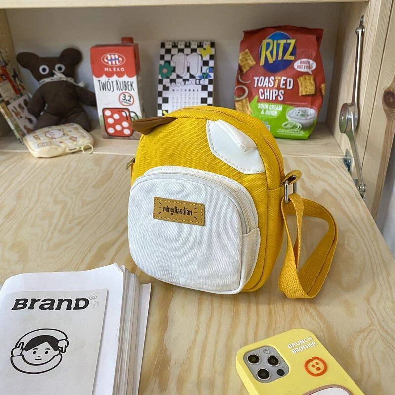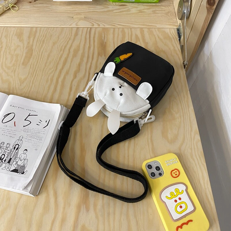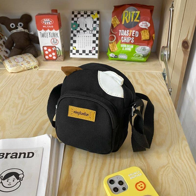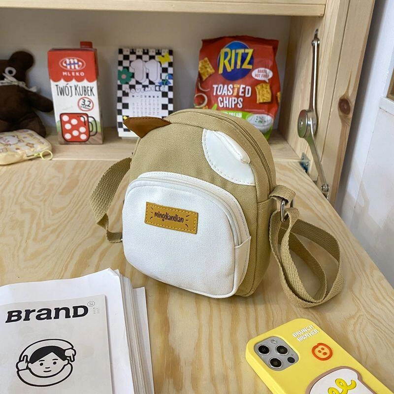 Crossbody Canvas Bag, Mobile Phone Bag, Unique Design, Niche Japanese Style, Artistic, Simple, Color-Blocking, for Girls, Students, Summer Casual Bag