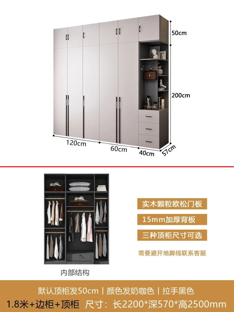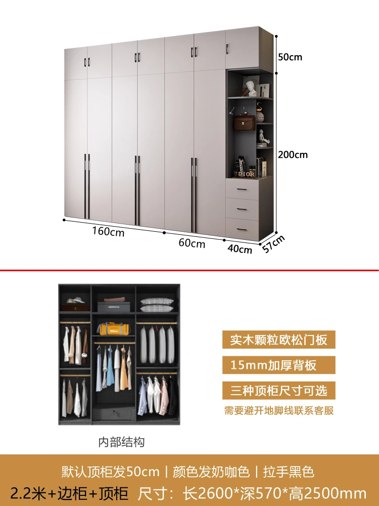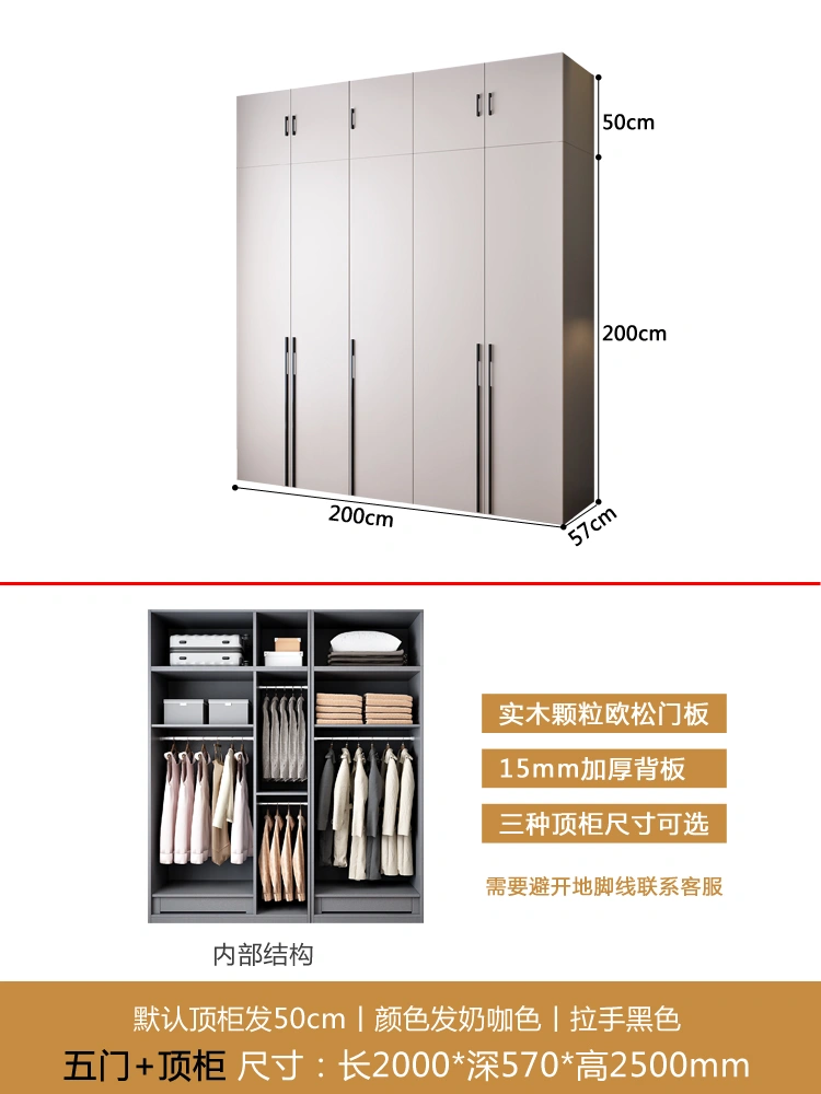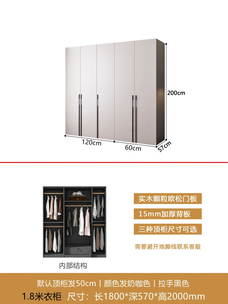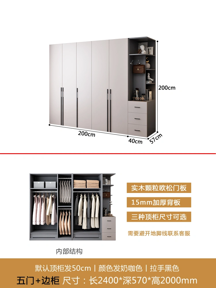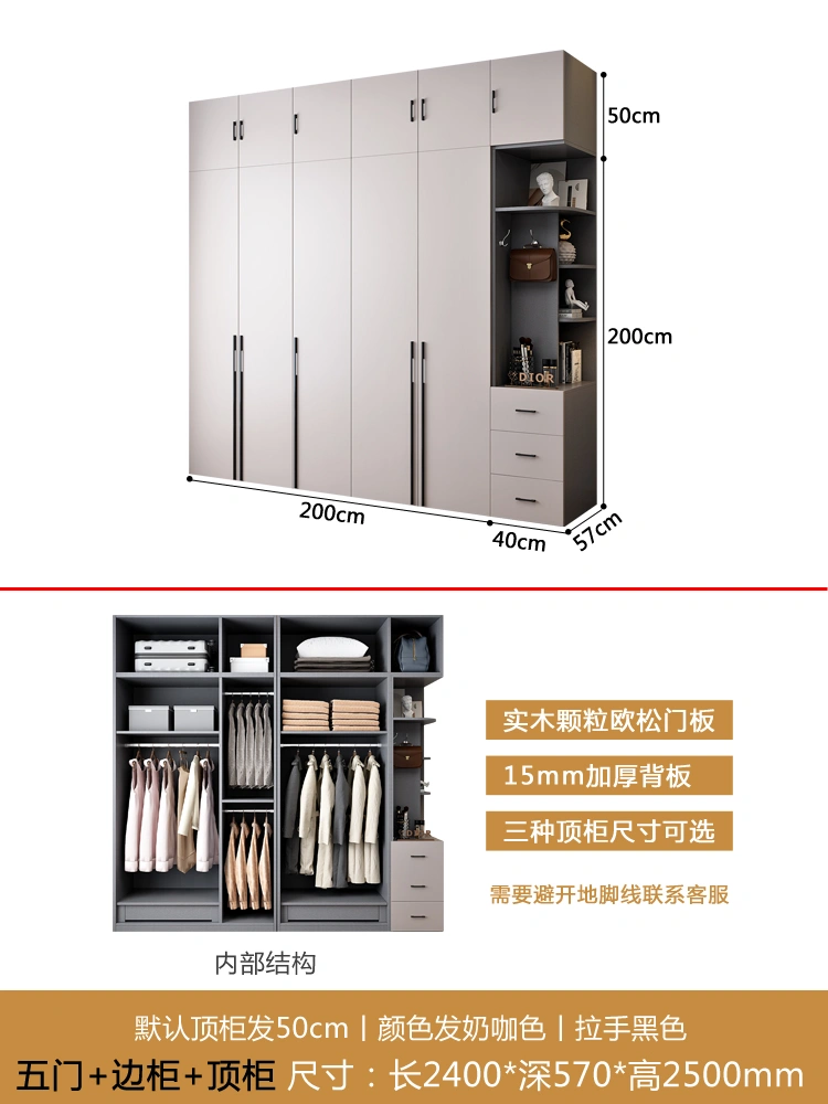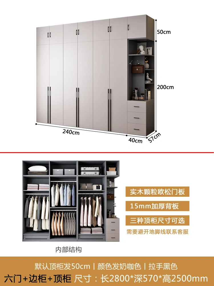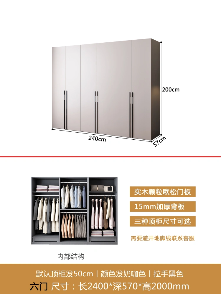 Modern Minimalist Wooden Six or Five-Door Combination Wardrobe for Home Bedroom with Sliding Doors