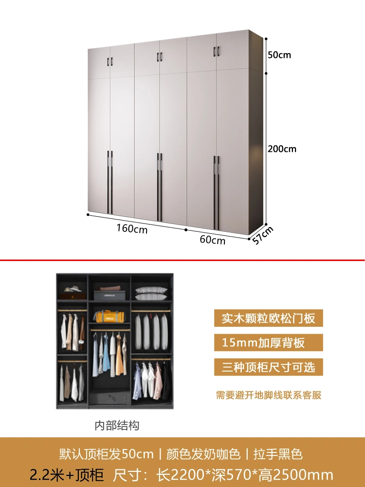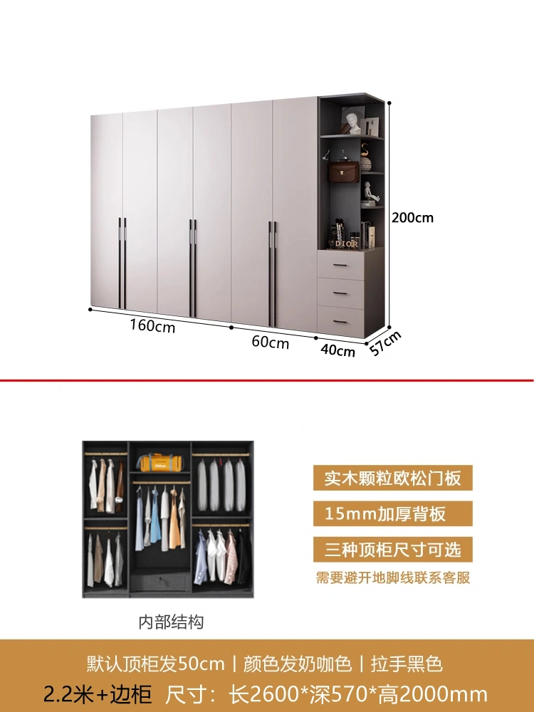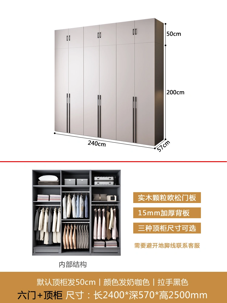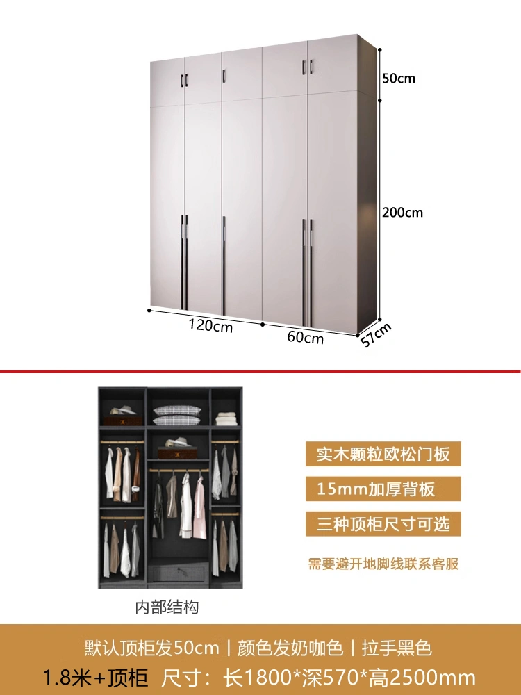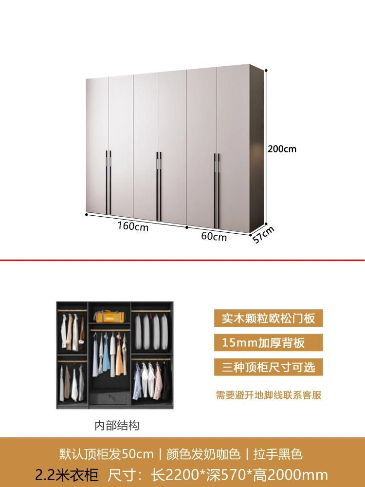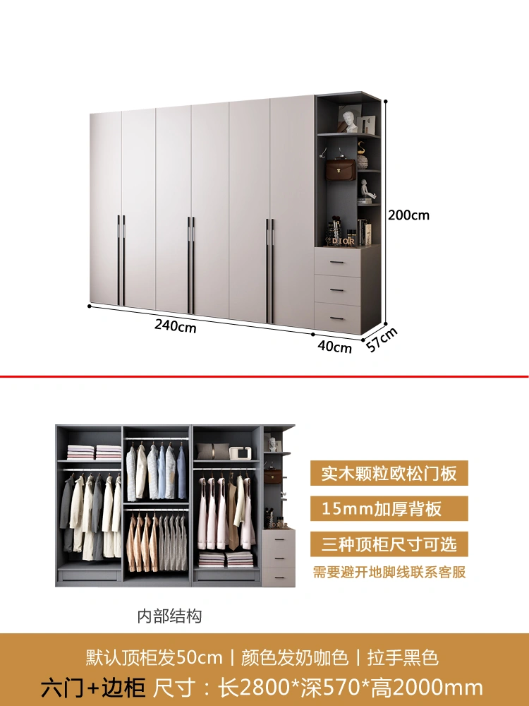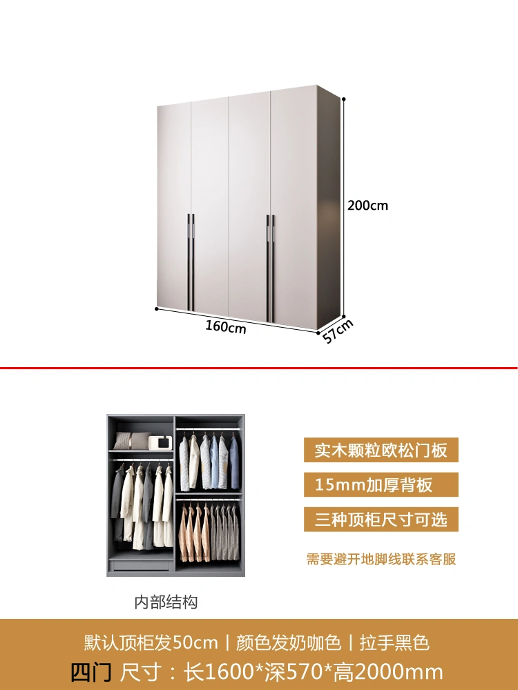 Modern Minimalist Wooden Six or Five-Door Combination Wardrobe for Home Bedroom with Sliding Doors