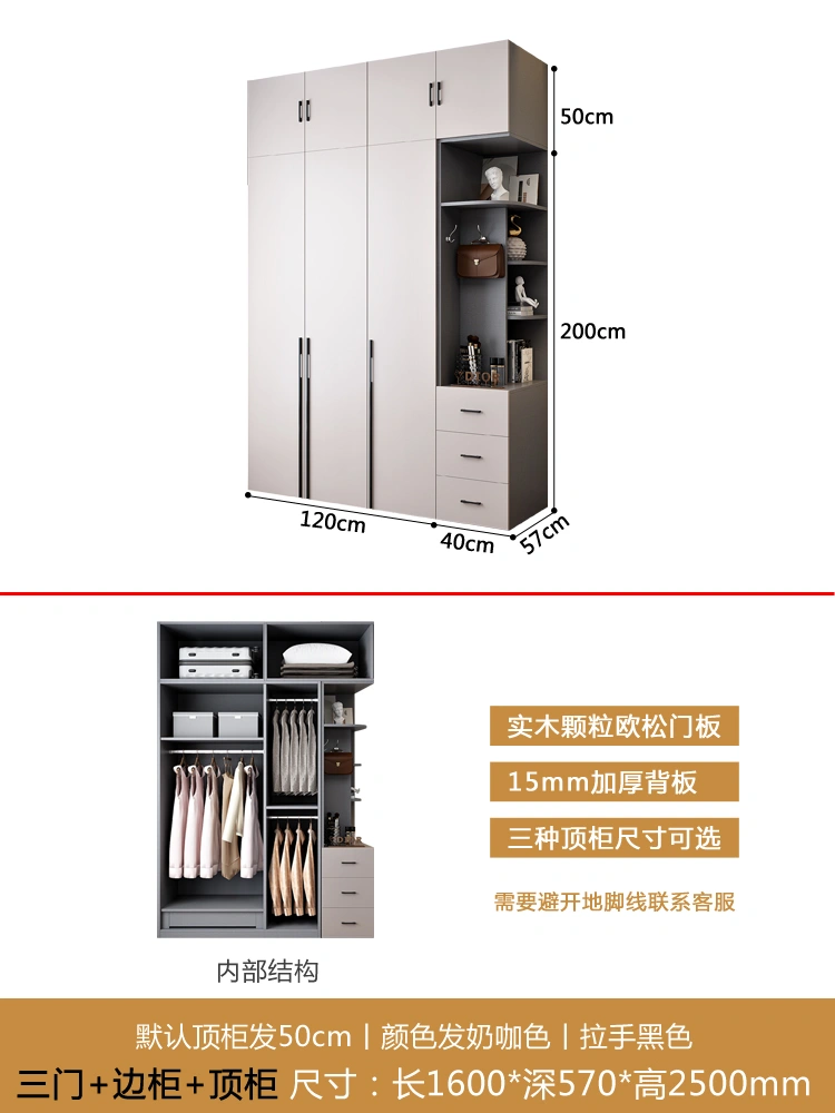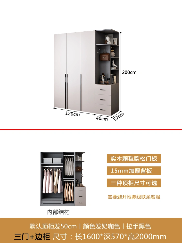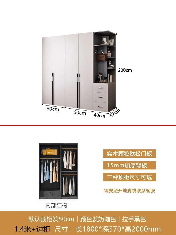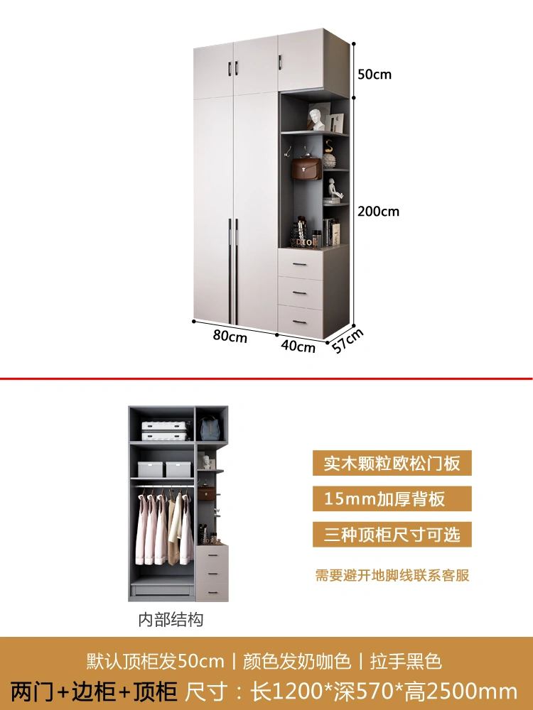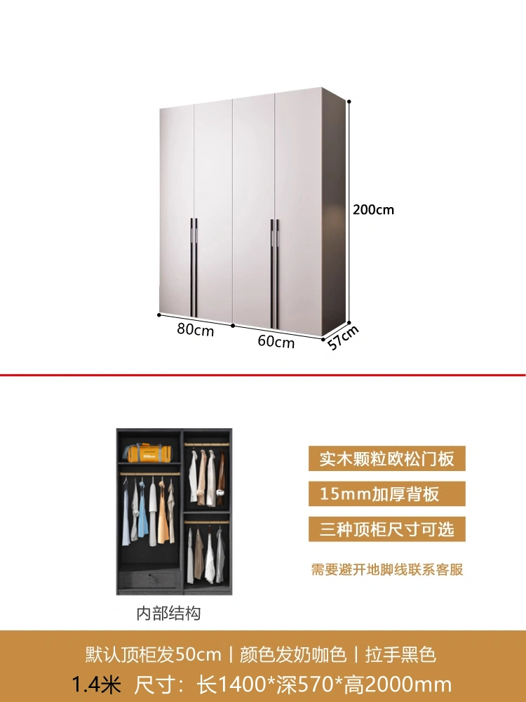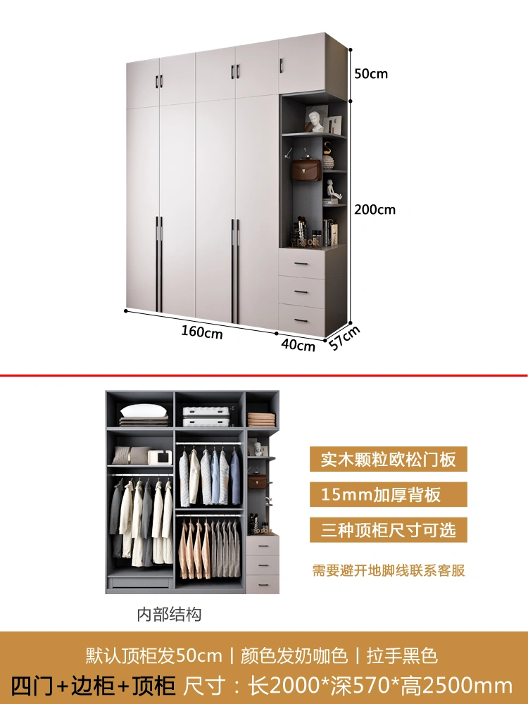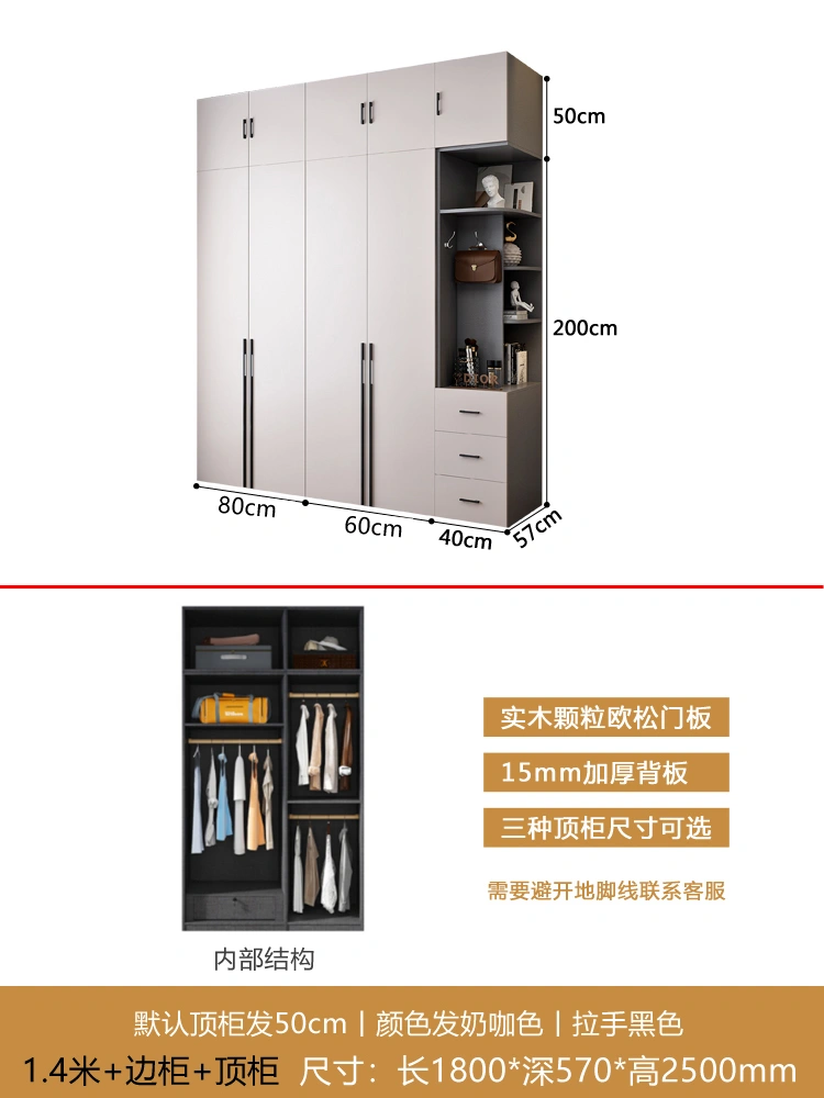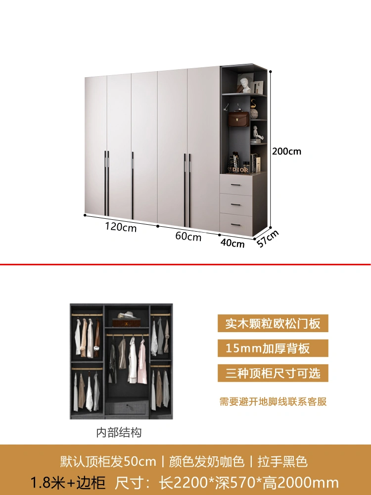 Modern Minimalist Wooden Six or Five-Door Combination Wardrobe for Home Bedroom with Sliding Doors
