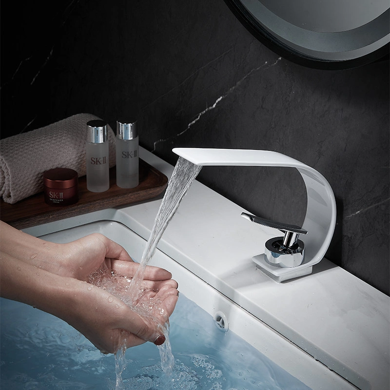 All-Copper White Waterfall Faucet for Hot and Cold Water, Luxury Bathroom Sink, Countertop Basin, Creative Basin Faucet
