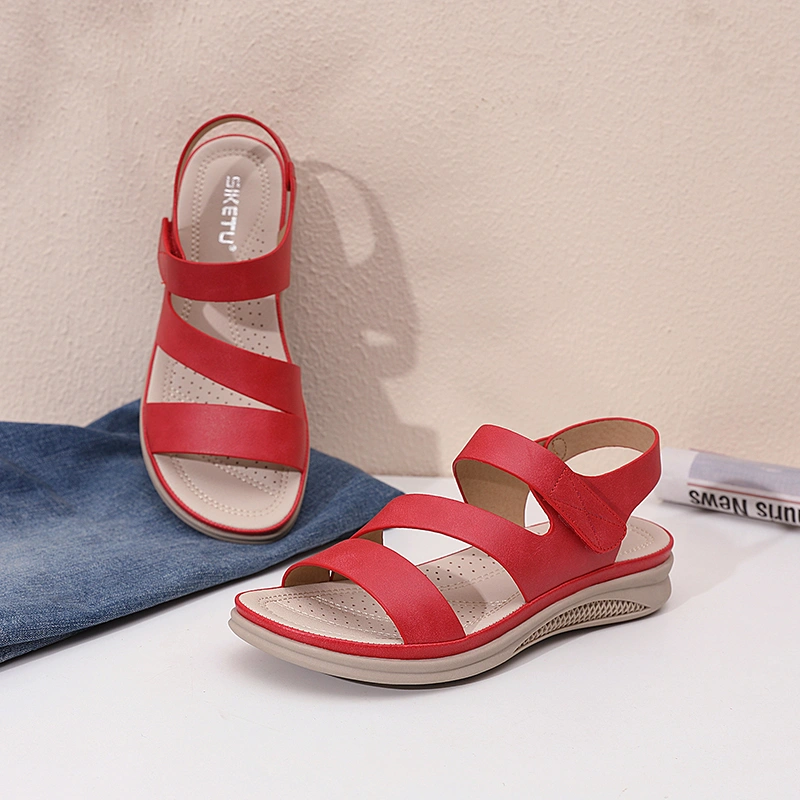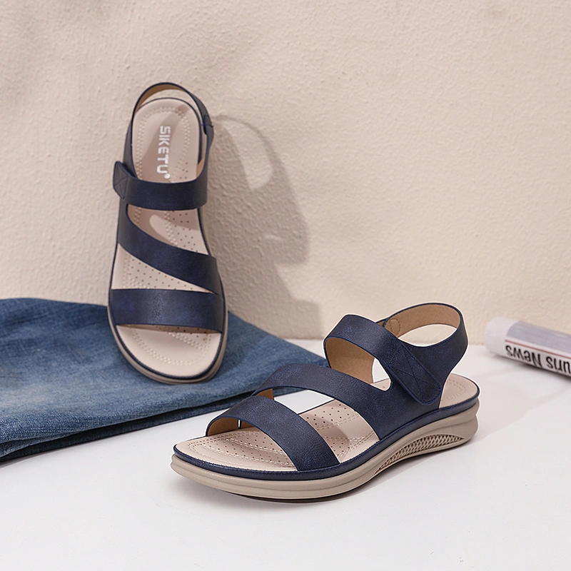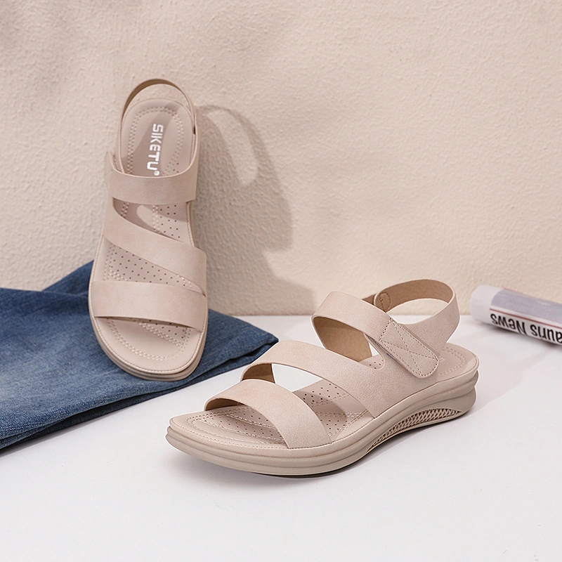 Casual Wedge Sandals for Women 2025 New Summer Thick-Soled Versatile Comfortable Flat Beach Shoes for Pregnant Women and Mothers Large Size Shoes