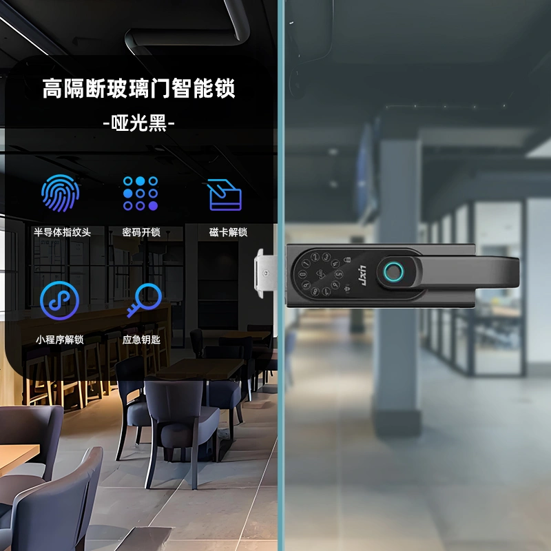 Zhongman Glass Door Fingerprint Lock Without Opening Double Door Office Password Lock Kfc Framed Push-Pull Access Control Partition Lock
