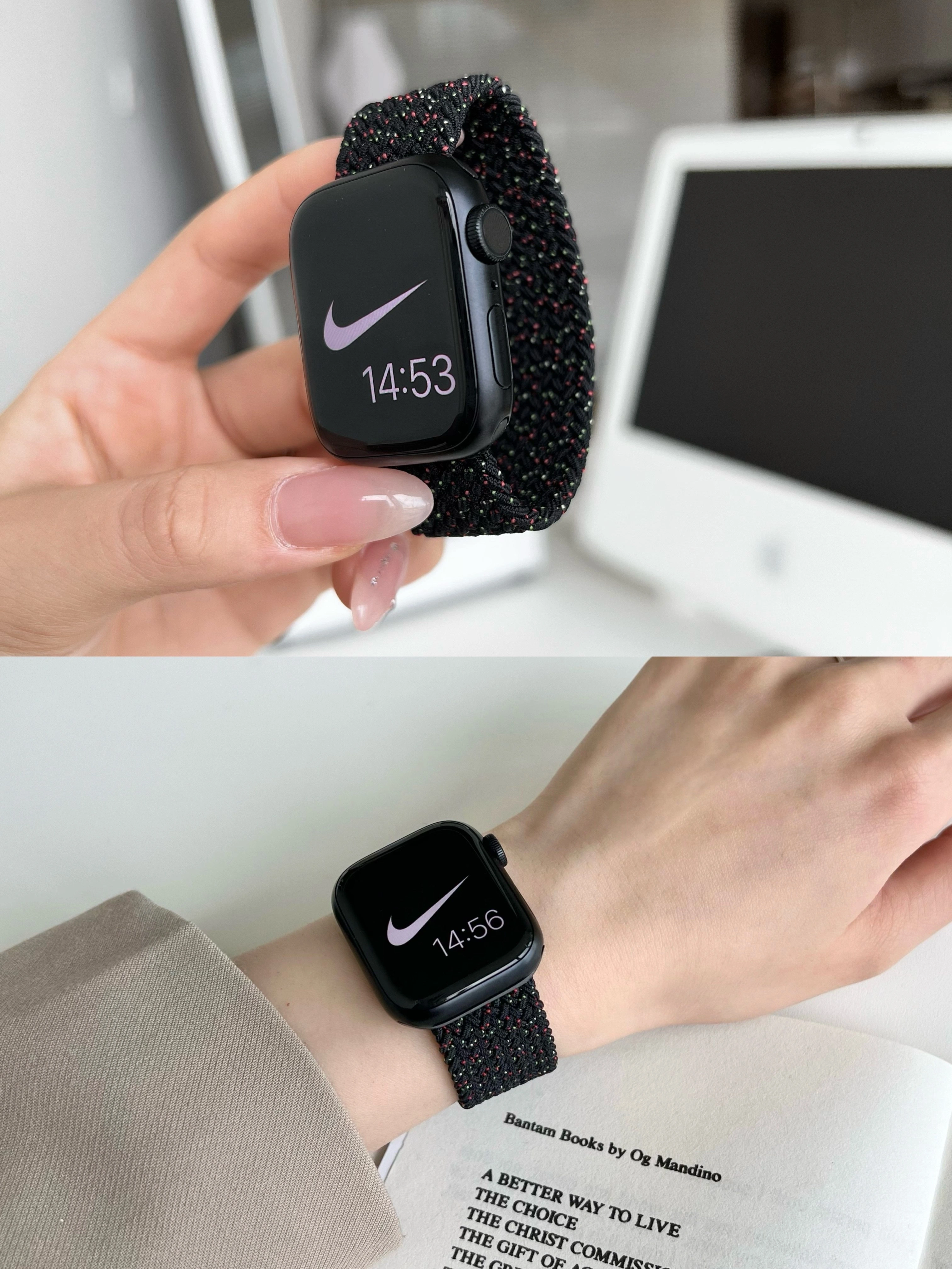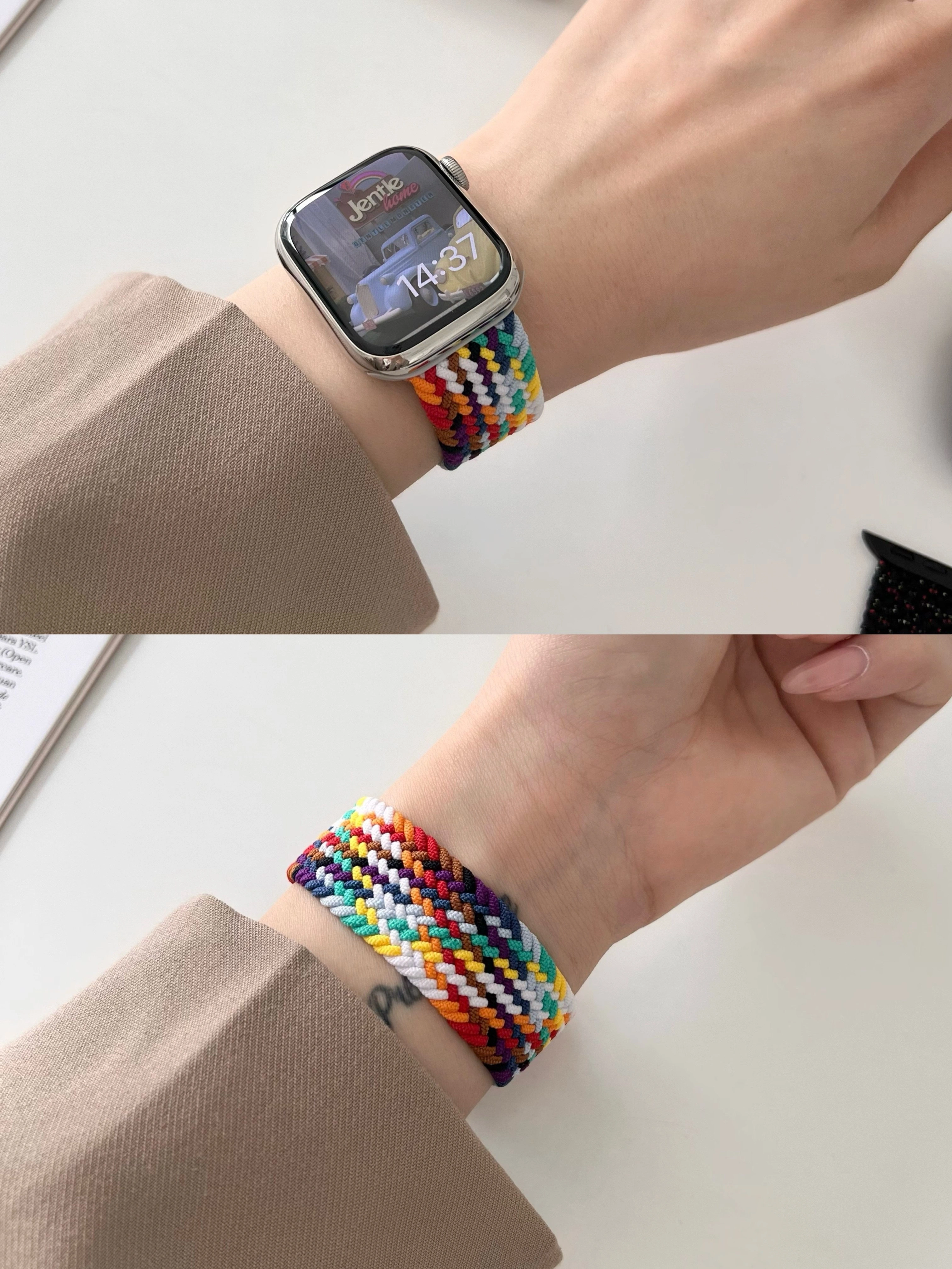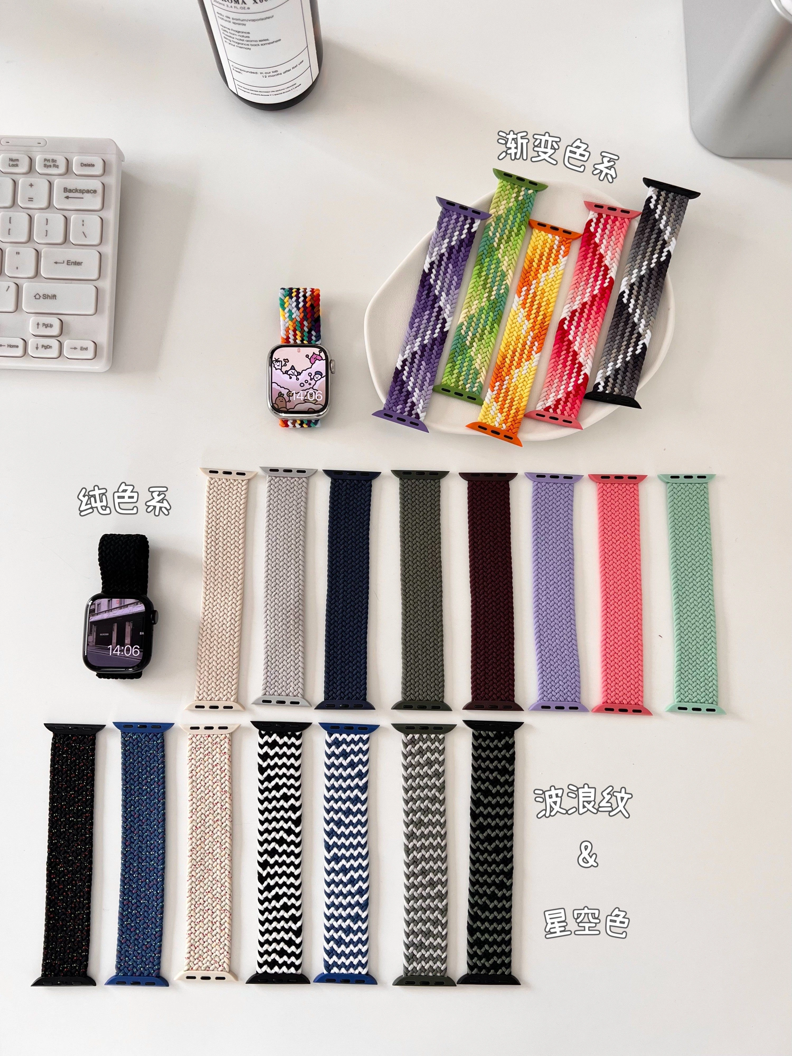 Spring Cherry Starlight Color Single-Loop Braided Elastic Sports Strap Suitable for Apple Watch Iwatch78 Universal 6543Se