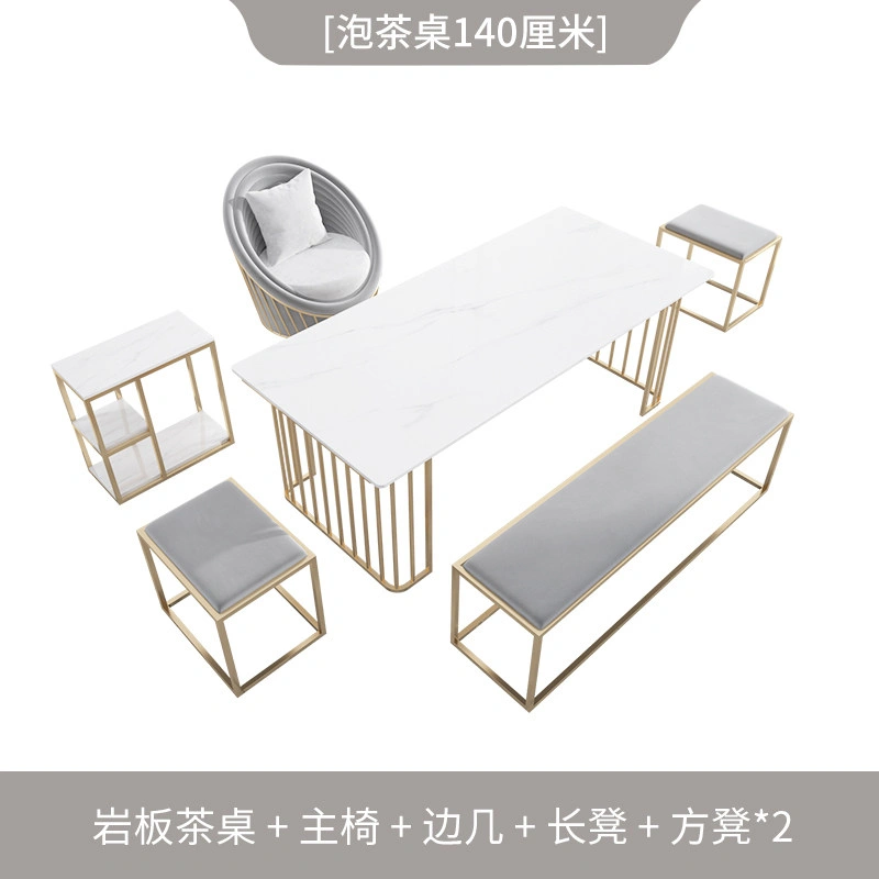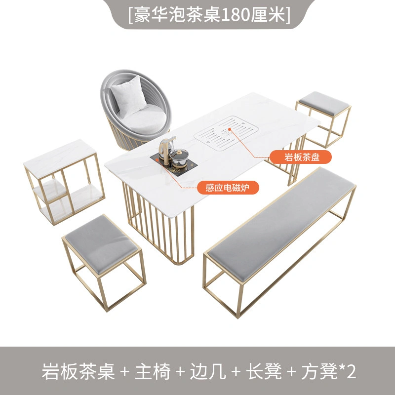 Modern Light Luxury Office Slate Tea Table, Living Room Home Use Simple Tea Table and Chair Set, Integrated Tea Table