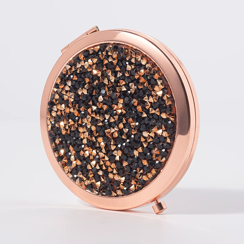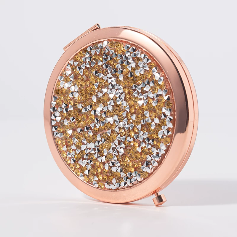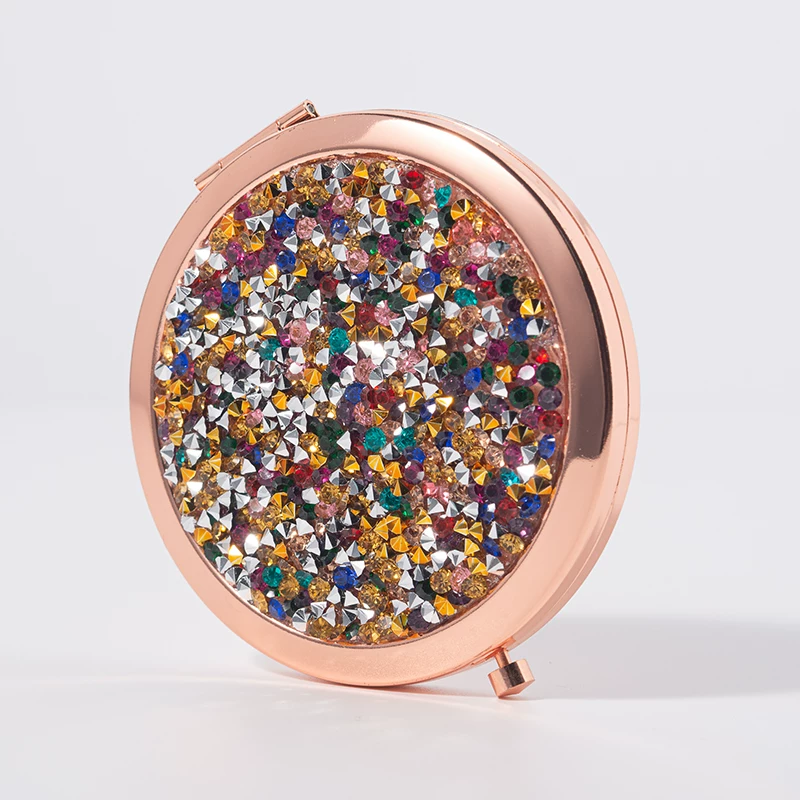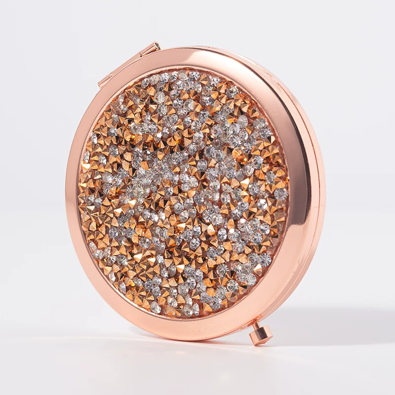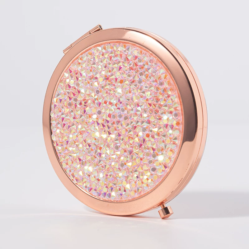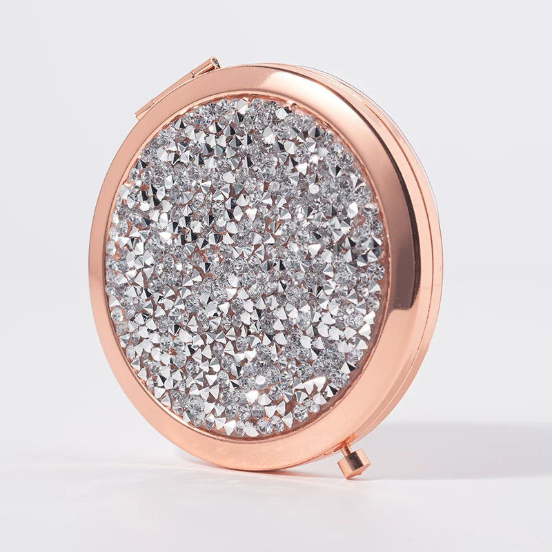 Diamond-Encrusted Makeup Mirror, Portable Mini Foldable Flip-Top Touch-Up Mirror, Exquisite Handheld Double-Sided Mirror for Students