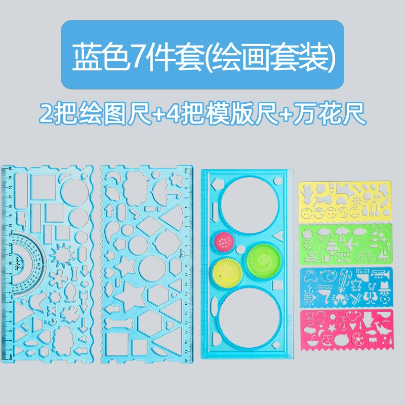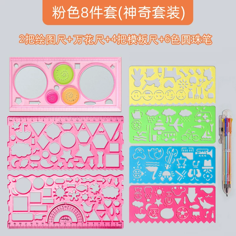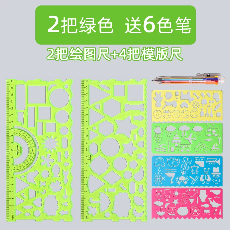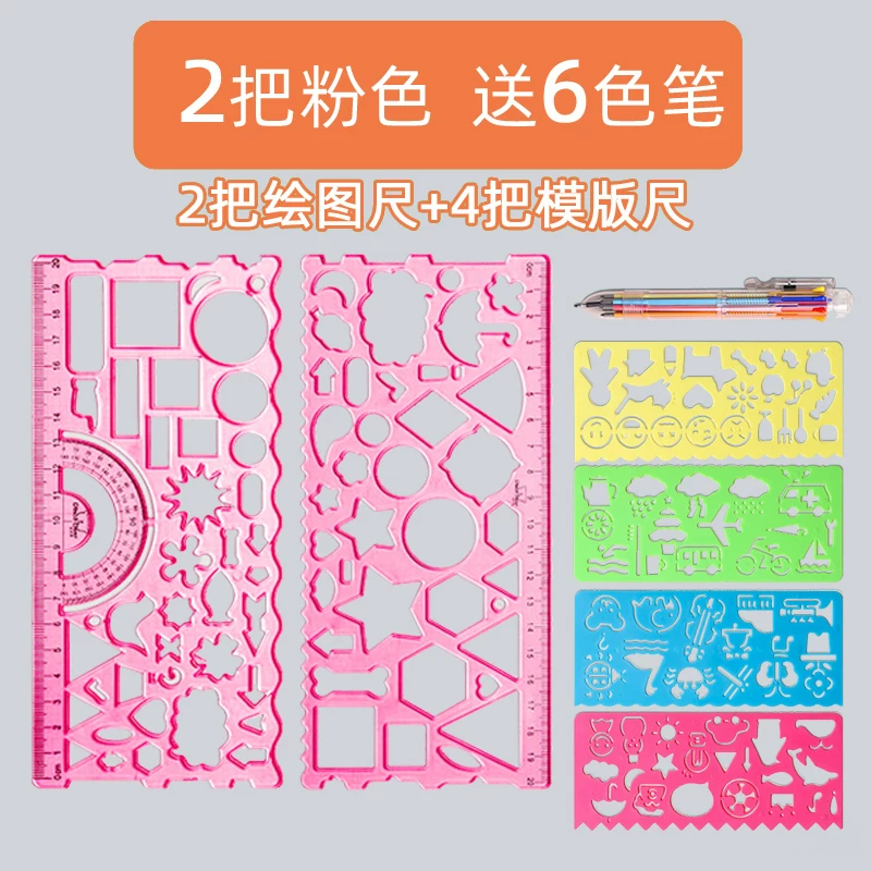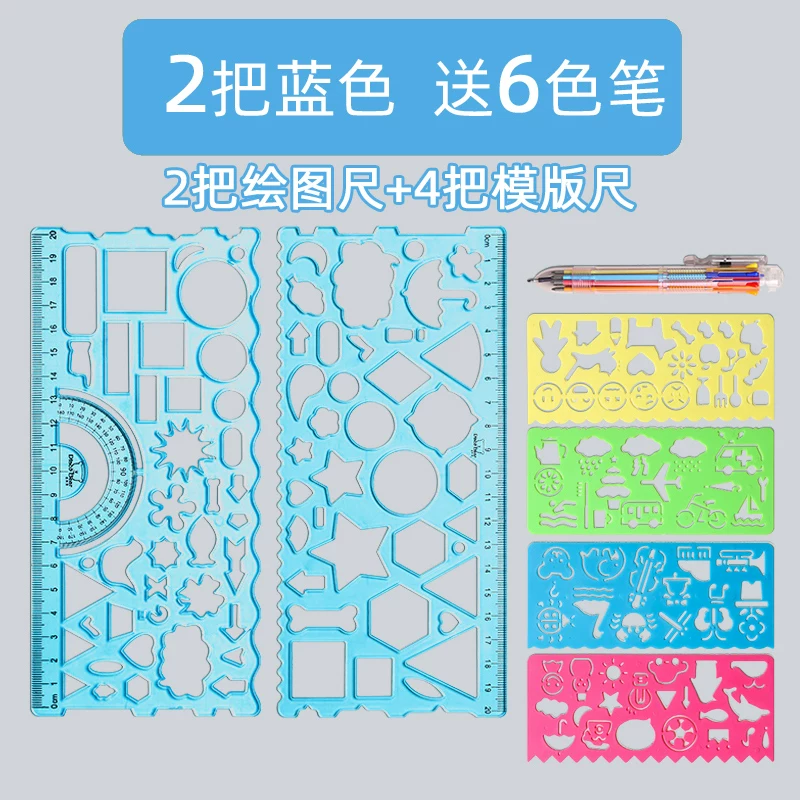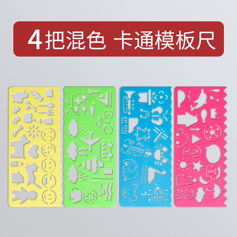 Multi-Functional Ruler Set for Elementary Students: Wave Ruler, Straight Ruler, Template for Hand-Drawn Reports, Children's Cartoon Drawing Ruler