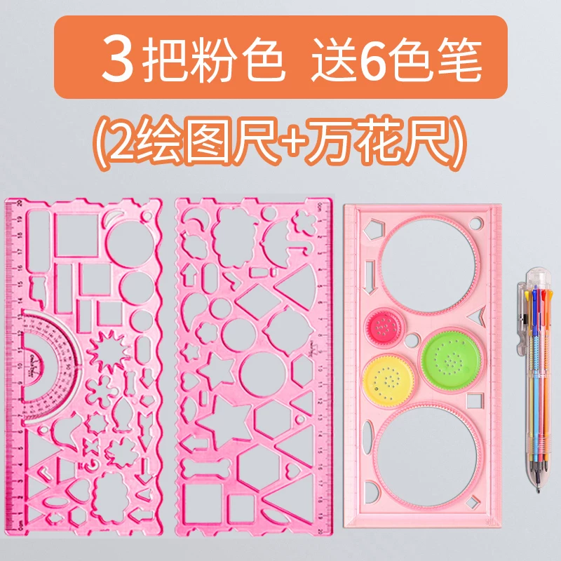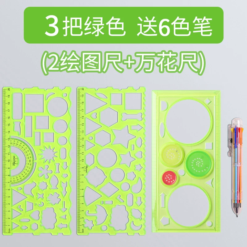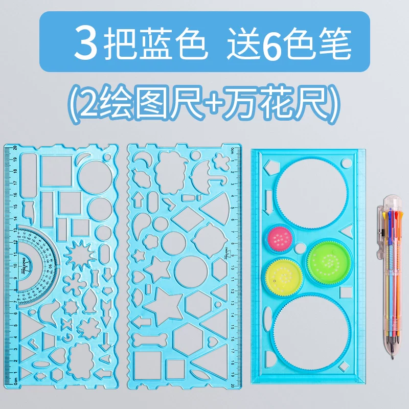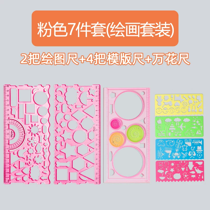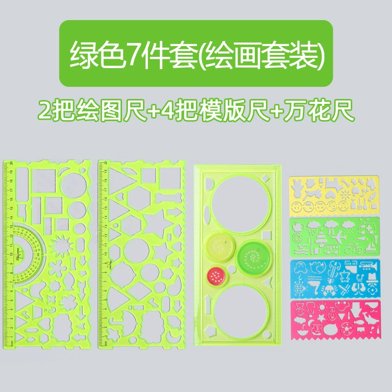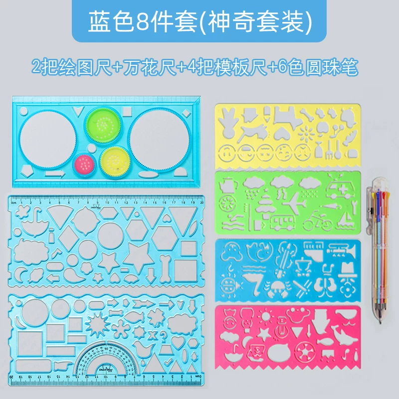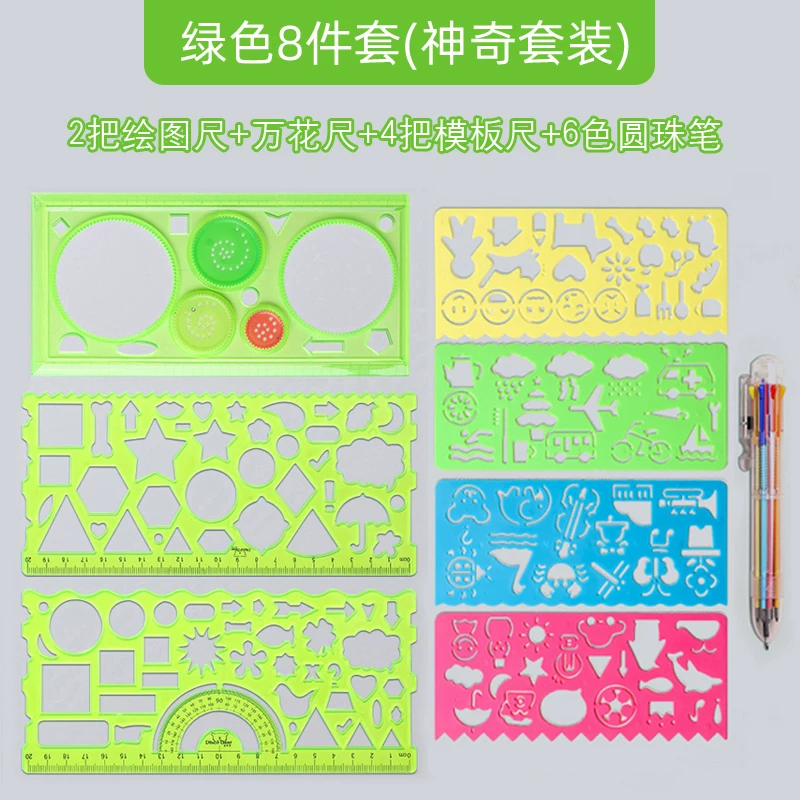 Multi-Functional Ruler Set for Elementary Students: Wave Ruler, Straight Ruler, Template for Hand-Drawn Reports, Children's Cartoon Drawing Ruler