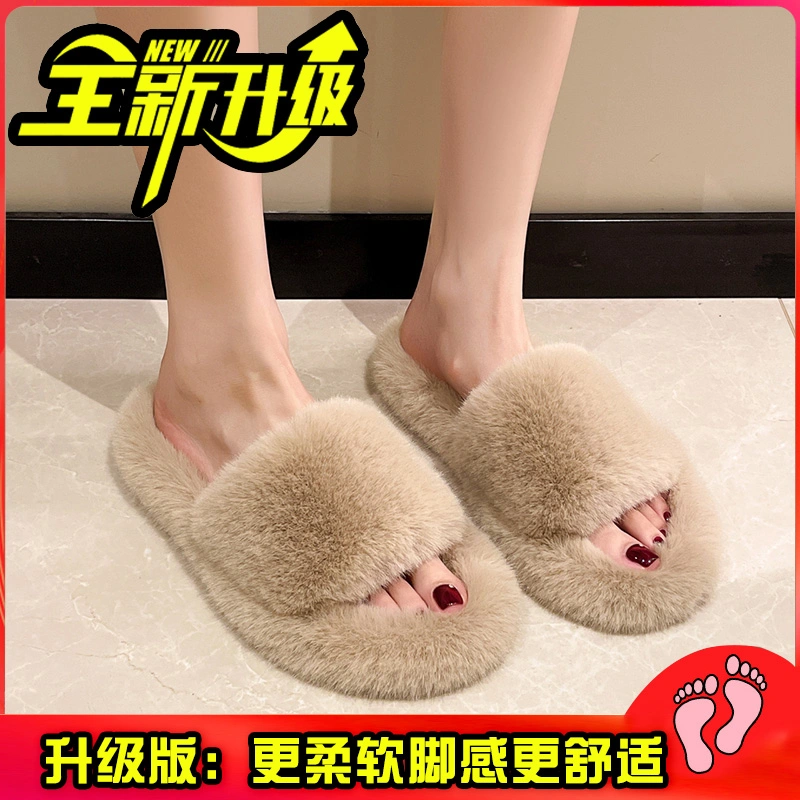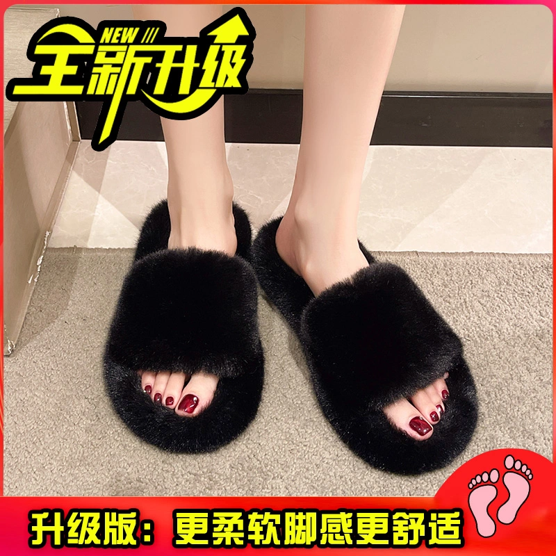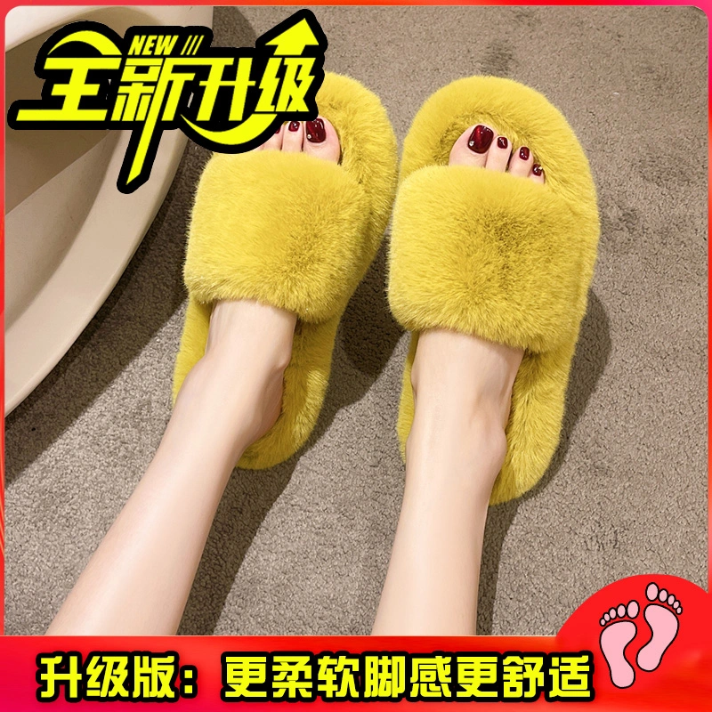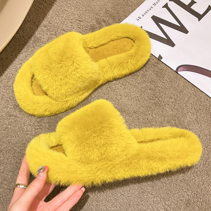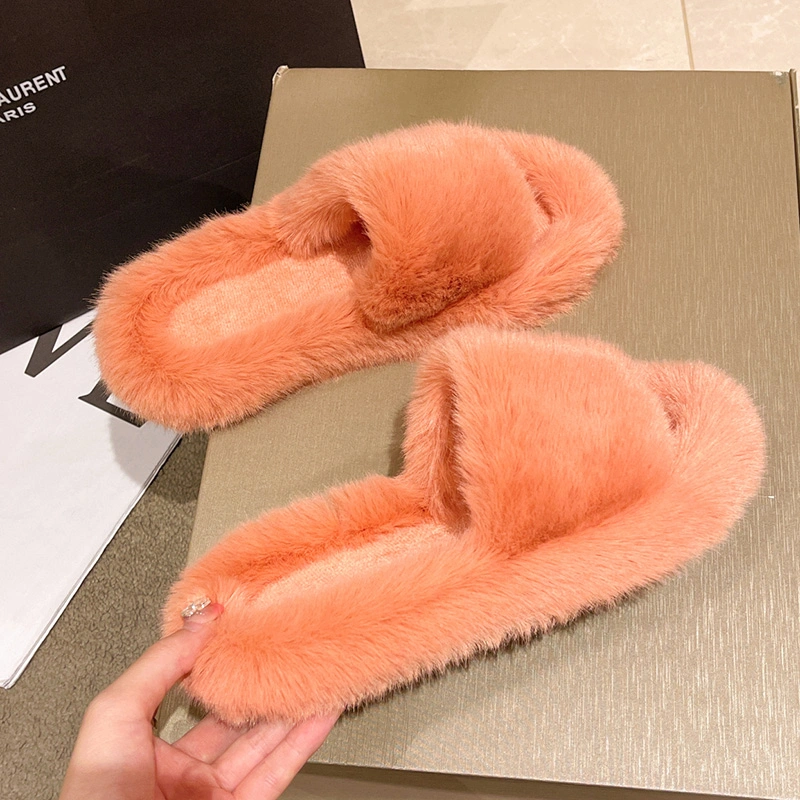 High-End Furry Slippers for Women to Wear Outside in Spring and Autum 2025 New Home Korean Style Chic Trendy Shoes One-Line Cotton Slippers