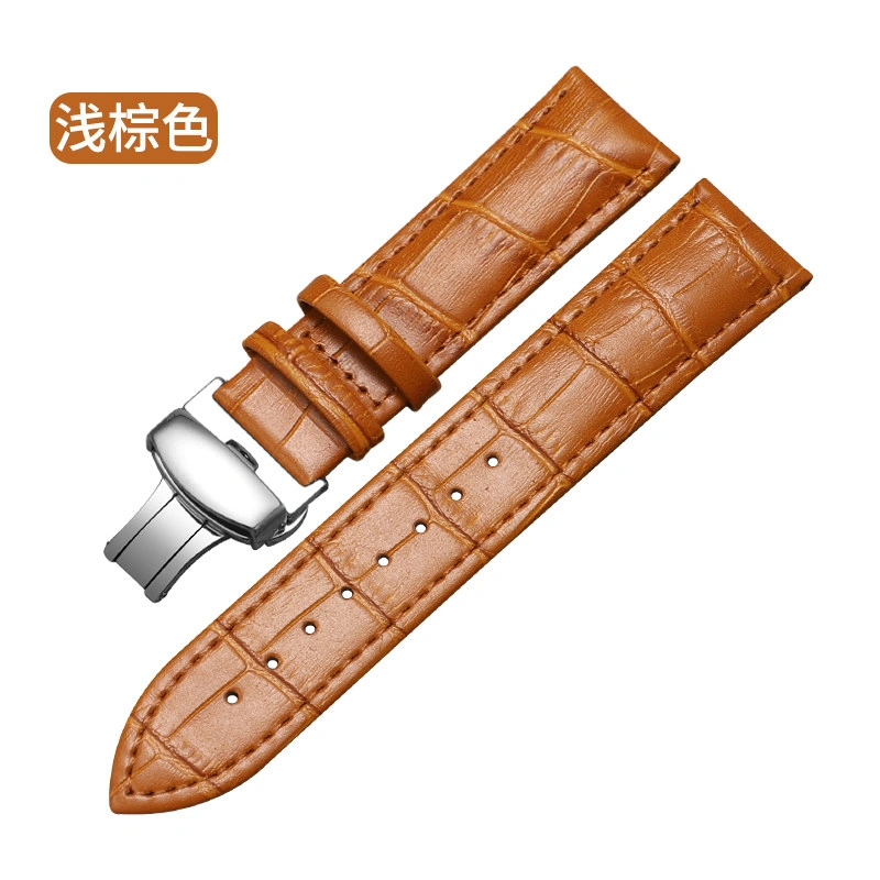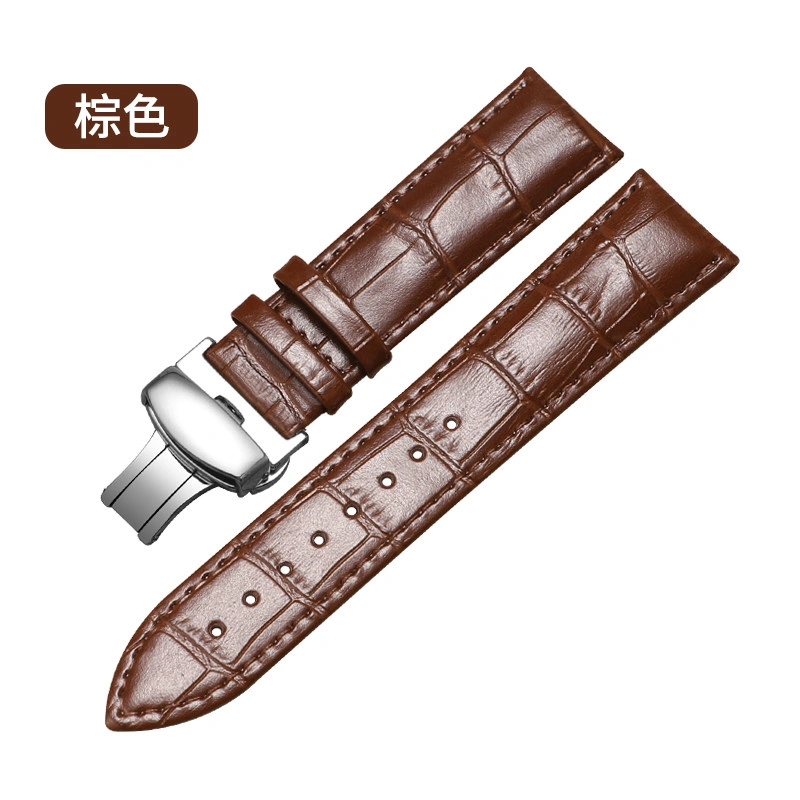 【Wear-Resistant】Calfskin High-End Genuine Leather Watch Strap, Unisex Watch Band, Waterproof and Durable Butterfly Clasp Watch Strap