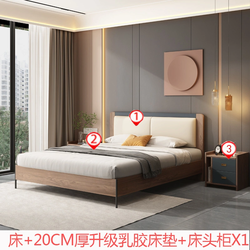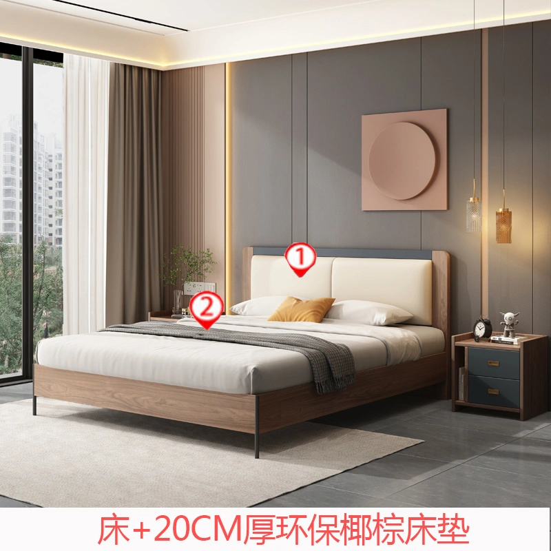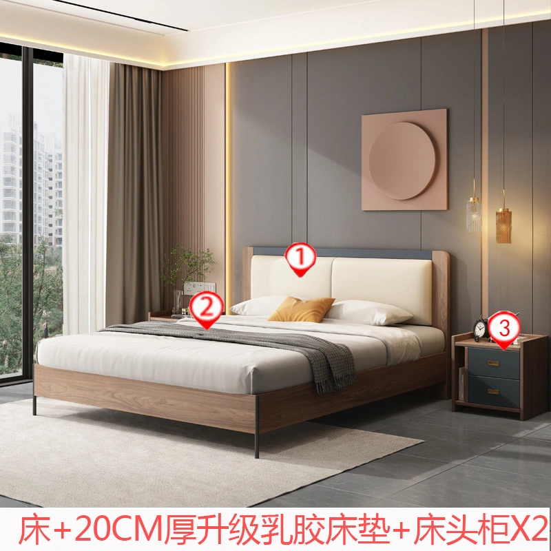 Solid Wood Bed with Soft Backrest, Simple Modern Bedroom Double Panel Large Bed 1.8m Master Bedroom 1.5m Scandinavian Wedding Bed
