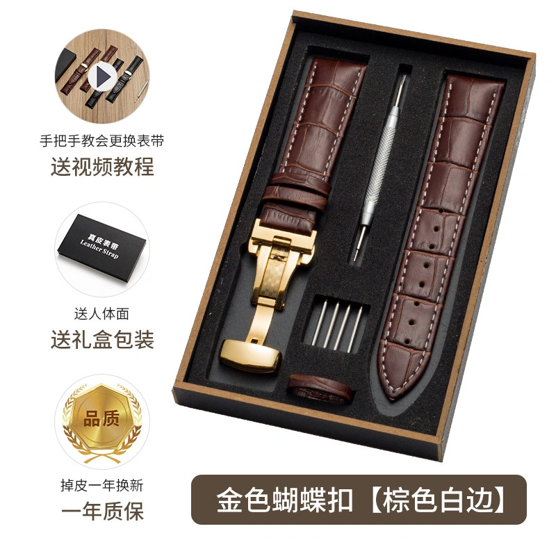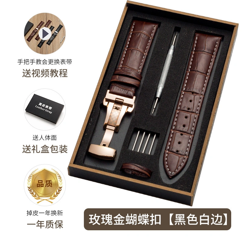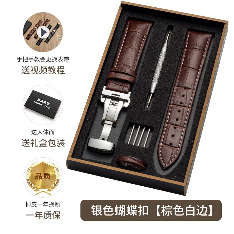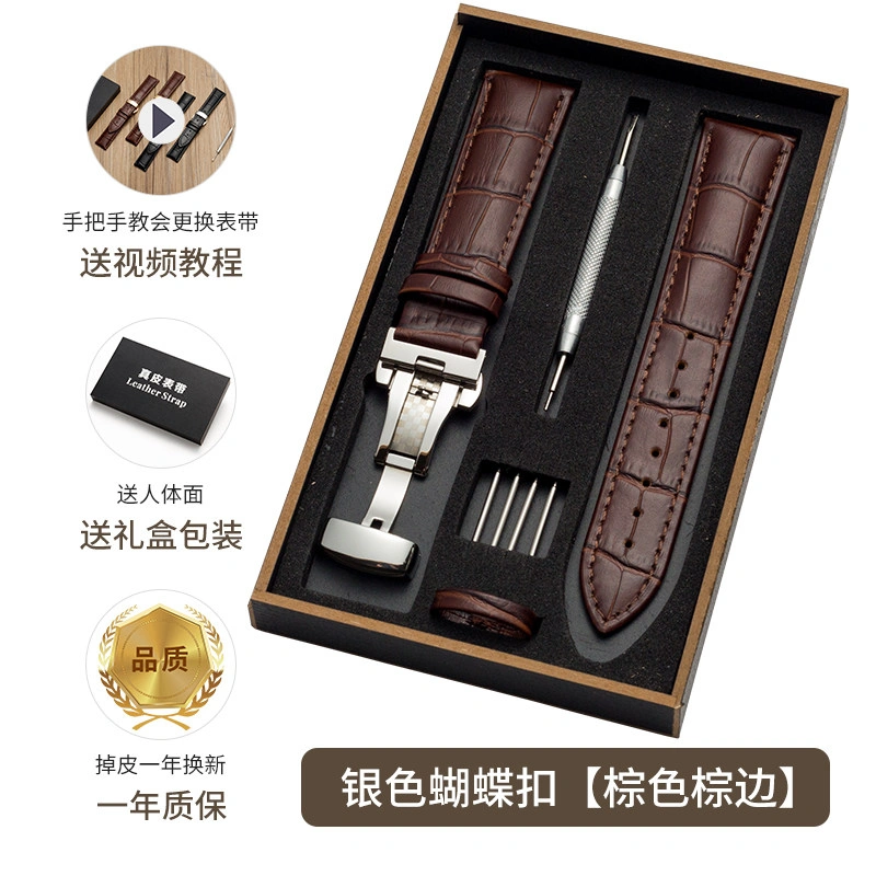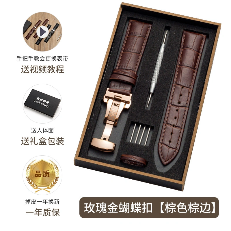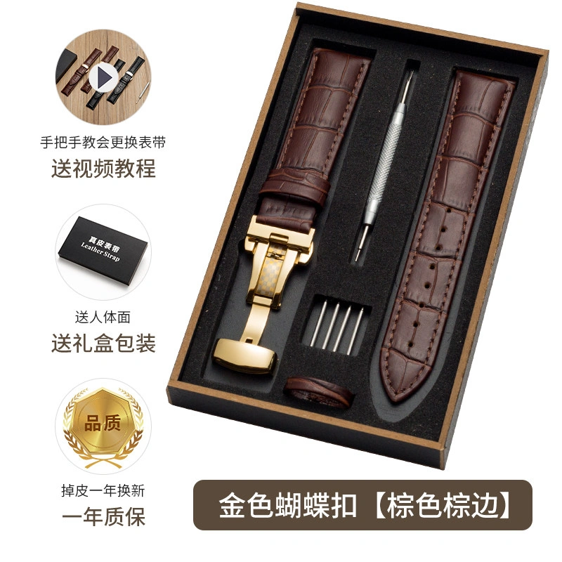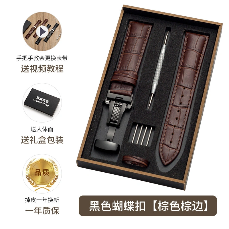 First-Layer Leather Watch Strap, Unisex New Watch Chain, Genuine Watch Strap Factory Direct Sales Accessories, Gift Box Packaging