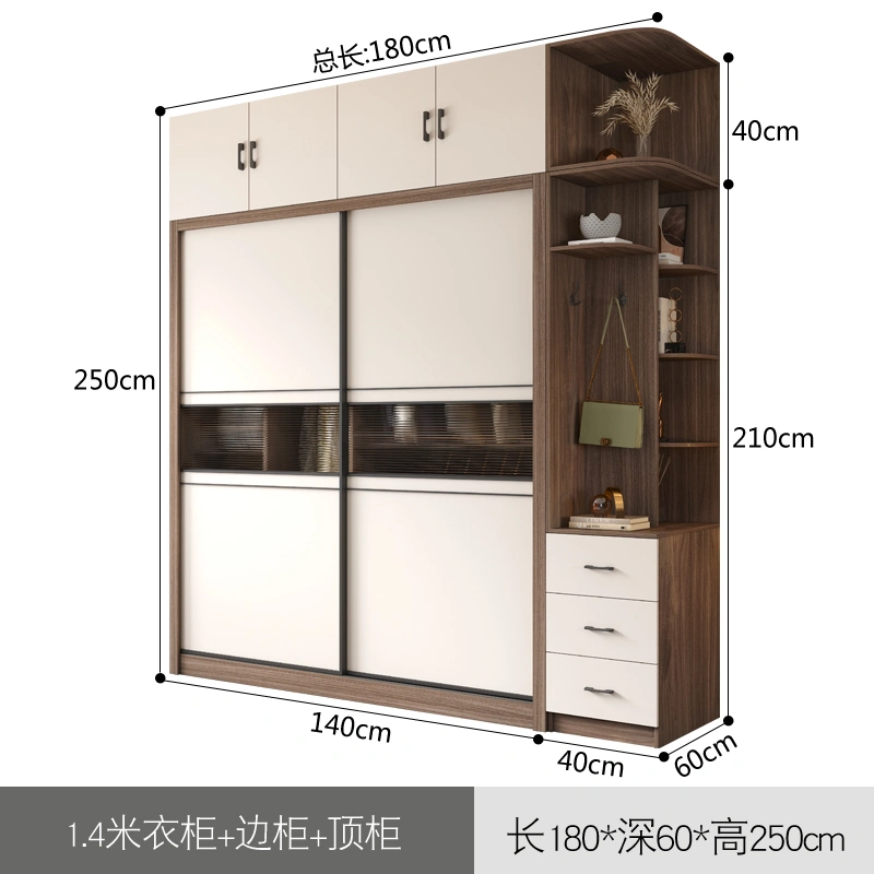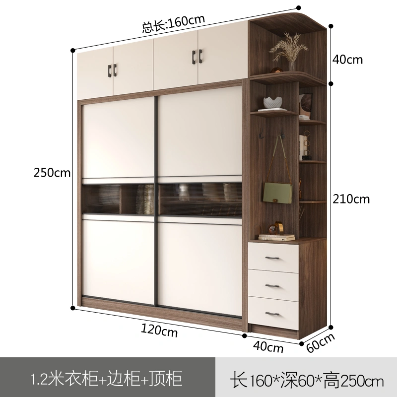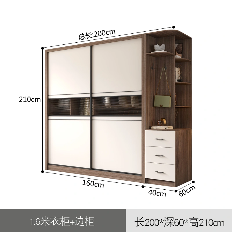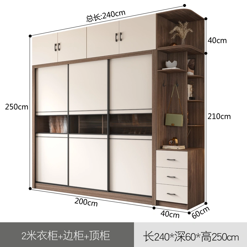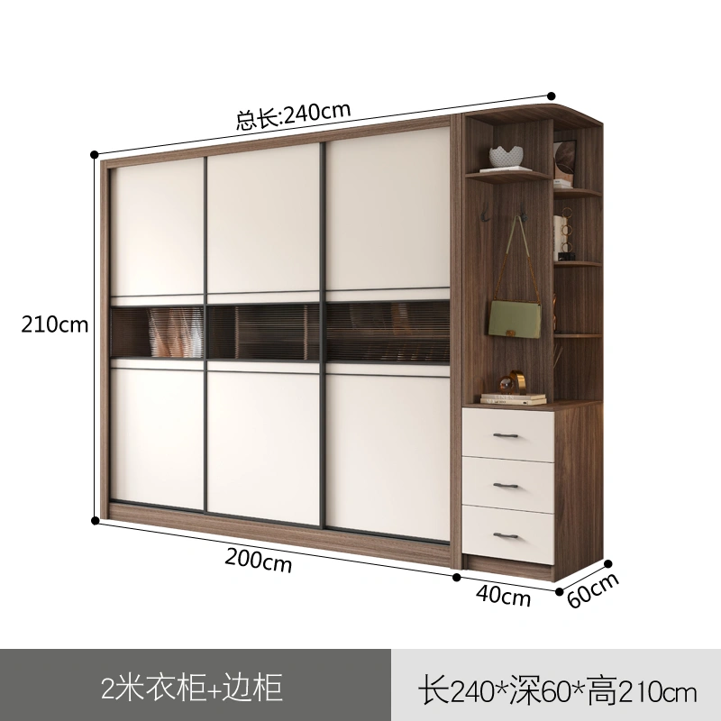 Light Luxury Sliding Door Wardrobe, Simple Modern Sliding Door Wooden Cabinet, Overall Small-Sized Home Bedroom Large Wardrobe