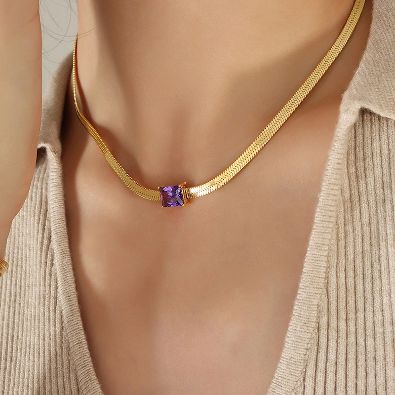 Sexy Girl's Stylish and High-End Fashion Necklace, the Same Style as European and American Internet Celebrities, with Colorful Zircon Design and Blade Chain